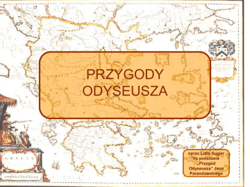 PRZYGODY ODYSEUSZA oprac.Lidia Sugier na podstawie „Przygód Odyseusza” Jana Parandowskiego Odyseusz – władca Itaki, uczestnik wojny Trojańskiej. W podróży powrotnej do Itaki przeżył wiele przygód. Tułał się przez 10 lat po morzach i oceanach, zanim wrócił do swej żony Penelopy. Koniec wojny Trojańskiej Według mitu był najprzebieglejszym z królów biorących udział w wojnie trojańskiej, autorem podstępu, dzięki któremu Grecy wygrali wojnę – konia trojańskiego, w którym ukryli się wojownicy greccy w czasie zdobywania Troi, pozorując jednocześnie odstąpienie od oblężenia. Obrońcy miasta wciągnęli konia do miasta. Tam w nocy Achajowie wyszli z ukrycia, otworzyli bramy wojownikom i w ten sposób zdobyli miasto. Kraina Kikonów Po zakończeniu wojny, dwanaście statków Odyseusza wyruszyło w podróż do domu. Niestety wiatry zapędziły podróżników najpierw do krainy zamieszkałej przez Kikonów. Żołnierze Odyseusza zrabowali i złupili ich miasto. Łatwe zwycięstwo świętowali potem na brzegu. Kiedy usnęli, napadli na nich Kikonowie. W trakcie bitwy Odyseusz stracił kilkudziesięciu ludzi. Pozostali w popłochu opuszczali krainę. Lotofadzy Kilka dni płynęli po wzburzonym morzu, aż dotarli do wybrzeży Lotofagów. Lud ten żywił się lotosem. Każdy, kto zjadł owo ziele, tracił pamięć i na zawsze chciał pozostać w tej krainie. Cyklop Polifem Żeglując po Morzu Sycylijskim statki Odyseusza przybiły do urodzajnej ziemi, która należała do cyklopów - olbrzymów o jednym oku na środku czoła. Najpotężniejszy wśród nich był Polifem, syn Posejdona. Cyklop Polifem Podróżnicy weszli do pieczary cyklopa. Ten zamknął za sobą wejście do jaskini i uwięził w niej Odyseusza i jego załogę. Pożarł też kilku z jego towarzyszy. Cyklop Polifem Odyseusz poczęstował olbrzyma winem i powiedział, że na imię ma „Nikt”. Kiedy upity do nieprzytomności Cyklop przewrócił się, Odyseusz wypalił mu oko. Na wrzaski potwora zbiegły się inne cyklopy, pytając, czy ktoś mu robi krzywdę. W odpowiedzi usłyszeli, że „Nikt”, mnie oślepił”(co w grece jest równoważne do „nikt mnie nie oślepił”). Cyklop Polifem Oślepiony Polifem odsunął głaz u wejścia do pieczary i czekał tam na uchodzących Greków. Odyseusz przywiązał wówczas siebie i towarzyszy do podbrzuszy baranów. Cyklop gładził wychodzące barany jedynie po grzbietach i w ten sposób Grecy razem ze stadem wyszli na wolność. Klątwa Posejdona Odyseusz ze swojego okrętu, odbijając od brzegu, zaczął się przechwalać:”Słuchaj, cyklopie. Oślepił ciebie ten, co zburzył Troję”. Wówczas Polifem poprosił swojego ojca Posejdona o pomoc i rzucili klątwę na Odyseusza. Od tej pory długo miał tułać się po morzach i obcych krainach zanim wróci do domu. Wiatry Eola Bohaterowie przybyli na Eolię. Zamieszkiwał na niej król wiatrów – Eol. Podarował on Odyseuszowi woreczek, w którym mieściły się złe wiatry i wichury. Wkrótce bohaterowie odpłynęli, gnani przyjaznym wiatrem. Gdy statki zbliżały się do brzegów Itaki, ciekawscy towarzysze Odyseusza rozwiązali woreczek. Na zewnątrz wydostały się wichury i niepomyślne wiatry. Wiatry Eola Statki znów znalazły się u wybrzeży Eolii. Tym razem przyjęcie było chłodne, podobnie pożegnanie. Żaden wiatr nie poruszał żagli statków. Kilka dni podróżnicy wiosłowali, aż dotarli do nowego lądu. Kraj Lestrygonów Gdy wysiedli, wybrzeże nagle zaroiło się od olbrzymów ludożerców, zwanych Lestrygonami. Ludożercy pozabijali ludzi, zniszczyli jedenaście statków Odyseusza. Pozostał tylko jeden okręt, na którym schronili się ludzie Odyseusza. Niezauważeni przez olbrzymów, odpłynęli. Wyspa Kirke Przybyli do kolejnej wyspy. Część wędrowców wysiadła ze statku i dotarła do zamku boginki Kirke. Kirke była czarodziejką i córką boga Słońca. Zaprosiła wszystkich do stołu. Kiedy jedli, boginka niepostrzeżenie dotknęła ich różdżką i zamieniła w świnie. Jeden z nich nie brał jednak udziału w przyjęciu, pospieszył więc do Odyseusza ze straszną wiadomością. Wyspa Kirke Wtedy Odyseuszowi przyszedł z pomocą bóg Hermes. Podarował mu czarodziejskie ziele odczyniające uroki i ostrzegł aby nie pozwolił się dotknąć różdżką czarodziejki. Kirke przeprosiła Odyseusza i przywróciła podróżnikom ich normalne postacie. Towarzysze spędzili rok na gościnnej wyspie. Przepowiednia Terezjasza Z wyspy Kirke udali się do krainy Kimerejczyków. Odyseusz, wykopał dół i złożył ofiary umarłym. Woń krwi zwierząt zwabiła dusze zmarłych. Pojawiła się też dusza wieszcza Tejrezjasza. Od jego ducha Odyseusz dowiedział się, że zniesie jeszcze wiele trudów i dopiero po latach wróci do ojczyzny. Wyspa Syren Wracał Odyseusz tą samą drogą. Raz jeszcze odwiedził swoją przyjaciółkę Kirke. Potem wiatr zaniósł okręt Odyseusza do wyspy syren. Syreny miały głos tak cudny, że kto je usłyszał, odkładał wiosła i zapominał o falach. Wtedy okręt rozbijał się. Wyspa Syren Aby towarzysze nie ulegli czarowi syreniego śpiewu, Odyseusz zalepił im uszy woskiem. Sam zaś kazał przywiązać się do masztu mocnymi powrozami. Syreny wabiły żeglarzy najpiękniejszym śpiewem, ale załoga okrętu ich nie słyszała. Jedynym, który bezpiecznie wysłuchał cudownego śpiewu syren, był sprytny Odyseusz. Między Scyllą a Charybdą Płynęli teraz ku dwóm skałom. Na jednej mieszkała Scylla - potwór morski o dwunastu łbach i sześciu głowach. Scylla porywała ryby, ludzi, delfiny. Obok stała druga Skała, mieszkanie Charybdy. Poczwara ta wciągała wodę i wypluwała, a wszystko co mogła pożreć zostawiała w paszczy. Między Scyllą a Charybdą Odyseusz wybrał drogę bliżej Scylli, sześciu z jego towarzyszy musiało za to zapłacić życiem, ale sam okręt i reszta załogi dzięki temu ocalała mogąc płynąć dalej. 