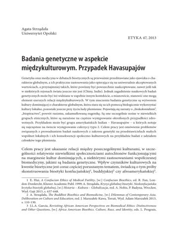 Badania genetyczne w aspekcie międzykulturowym. Przypadek