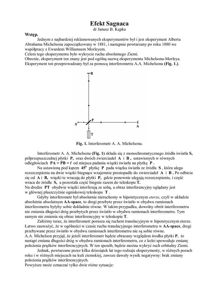 Eksperyment ten przeprowadzany był za pomocą interferometru A.A. Michelsona (Fig. 1.).