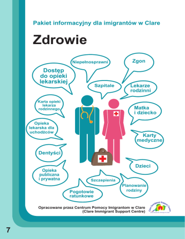 Pakiet informacyjny dla imigrantów w Clare Zdrowie Niepełnosprawni Dostęp do opieki lekarskiej Szpitale Karta opieki lekarza rodzinnego Zgon Lekarze rodzinni Matka i dziecko Opieka lekarska dla uchodźców Karty medyczne Dentyści Opieka publiczna i prywatna Dzieci Szczepienia Pogotowie ratunkowe Planowanie rodziny Opracowane przez Centrum Pomocy Imigrantom w Clare (Clare Immigrant Support Centre) 7 OPIEKA ZDROWOTNA Kto zapewnia opiekę zdrowotną w Irlandii? W Irlandii dostępnych jest wiele usług w zakresie pomocy lekarskiej i psychologicznej. Usługi te obejmują specjalistyczną opiekę lekarską w przypadku różnych poważnych chorób. Zarząd Służby Zdrowia (Health Service Executive — HSE) Z arząd Służby Zdrowia (Health Service Executive — HSE) zapewnia usługi w zakresie publicznej opieki zdrowotnej i socjalnej, które obejmują: • szpitale; • ośrodki zdrowia; • świadczenia społeczne dla starszych osób; • pomoc rodzinie; • szeroko pojętą pomoc socjalną; • usługi psychologiczne i psychiatryczne; oraz • usługi dla niepełnosprawnych. Służba zdrowia jest podzielona na 4 rejony administracyjne HSE. Ten region obejmuje HSE West. Jeżeli masz obawy dotyczące zdrowia swojego lub swojej rodziny, umów się na wizytę u swojego lekarza rodzinnego (GP) 2 Pakiet informacyjny dla imigrantów Opieka zdrowotna w Irlandii jest dostępna zarówno w systemie publicznym, jak i prywatnym. Jeżeli Twoje dochody są poniżej pewnego poziomu, może Ci przysługiwać tzw. karta medyczna (medical card). Karta medyczna uprawnia Cię do szeregu różnych świadczeń. Jeżeli masz kartę medyczną, możesz odbywać wizyty u swojego lekarza rodzinnego (zwanego GP) bezpłatnie. Zwykle osoby pozostające na Twoim utrzymaniu (mąż lub żona i dzieci) będą również uprawnione do bezpłatnych usług medycznych, które obejmują: • wizyty u lekarza rodzinnego; • usługi szpitalne w publicznych szpitalach; • większość leków przepisanych przez lekarza; • opieka położnicza i pediatryczna; • usługi dentystyczne, okulistyczne i laryngologiczne; • akcesoria medyczne. W przypadku niektórych z tych usług może jednak obowiązywać lista osób oczekujących. HSE Czy przysługuje mi karta medyczna, gdy skończyłem 70 lat? J eżeli ukończyłeś 70 lat, przysługuje Ci karta medyczna (medical card), o ile Twój dochód brutto nie przekracza: • 700 euro tygodniowo na osobę samotną; oraz • 1 400 euro tygodniowo na małżeństwo. Jeżeli Twój dochód przekracza powyższe limity, a masz bardzo wysokie wydatki na cele medyczne, możesz ubiegać się o kartę medyczną w ramach „programu uznaniowego”. Jak otrzymać kartę medyczną? A by przysługiwała Ci karta medyczna (medical card) musisz spełniać kryterium wysokości dochodów — Twój dochód musi być poniżej pewnego poziomu. Aby dowiedzieć się, czy przysługuje Ci karta medyczna, zgłoś się do najbliższej placówki HSE lub Centrum Informacji Obywatelskiej (Citizens’ Information Centre — CIC). Karta medyczna może Ci przysługiwać automatycznie, jeżeli już pobierasz państwowe świadczenia, takie jak: • dodatkowe świadczenie socjalne (supplementary welfare allowance); • nieskładkowa emerytura dla osób starszych lub wdów/wdowców; • dodatek z tytułu niepełnosprawności (disability allowance) lub zapomoga dla kobiet opuszczonych przez mężów (deserted wife’s allowance); lub Informacje o kartach medycznych udzielane są w placówce HSE: Sandfield Centre, Highfield Park, Ennis, (065) 686 8076. Wymagany jest numer PPS (zob. s. 7 ulotki „Zatrudnienie”) • dodatek dla rodzin niepełnych (one-parent family payment). Usługi bezpłatne U sługi dostępne bezpłatnie w ramach programu kart medycznych (Medical Card Scheme) obejmują: • usługi lekarza rodzinnego (GP); • skierowania do lekarzy specjalistów; • leczenie szpitalne całodobowe i ambulatoryjne; • recepty na leki (z pewnymi wyjątkami); • opieka zdrowotna dla kobiet; • usługi psychologiczne dla osób z urazami w wyniku tortur, gwałtu lub innych krytycznych sytuacji życiowych; • badania okulistyczne i okulary; • b a d a n i a l a r y n g o l o g i c z n e i a p a ra t y słuchowe; • opieka dentystyczna dla dorosłych; • gdy zgłoszono problemy w wyniku szkolnych badań dentystycznych, opieka dentystyczna dla dzieci; • usługi położnicze; • szczepienia; oraz • badania przesiewowe. Pakiet informacyjny dla imigrantów 3 LEKARZE RODZINNI Pierwszy krok — lekarz rodzinny Nie zwlekaj i zapisz się do lekarza rodzinnego (General Practitioner — GP). Nie czekaj aż zachorujesz. Jeżeli masz kartę medyczną (medical card), będzie Ci potrzebna, aby rozpocząć leczenie lub wykupić przepisane leki. Karta opieki lekarza rodzinnego (GP visit card) J eżeli nie przysługuje Ci karta medyczna (medical card), może Ci jednak przysługiwać karta opieki lekarza rodzinnego (GP visit card), która uprawnia jedynie do bezpłatnych wizyt u lekarza rodzinnego. W przypadku karty opieki lekarza rodzinnego (GP visit card) dochód może być wyższy niż w przypadku karty medycznej (medical card). Możesz sprawdzić, czy przysługuje Ci karta opieki lekarza rodzinnego (GP visit card) kontaktując się z najbliższym Ośrodkiem Zdrowia HSE (HSE Health Centre) lub z Centrum Informacji Obywatelskiej (Citizens’ Information Centre — CIC). Wymagane będzie wypełnienie formularza wniosku. Opieka zdrowotna dla dzieci D zieci w Irlandii są uznawane za osoby pozostające na utrzymaniu swoich rodziców i mają uprawnienia do takich samych usług opieki zdrowotnej, jak ich rodzice. Oznacza to, że jeżeli masz kartę medyczną (medical card), Twoje dzieci są na niej uwzględnione jako osoby pozostające na Twoim utrzymaniu i przysługują im takie same świadczenia zdrowotne jak Tobie. Ponadto jest szereg usług zdrowotnych skierowanych specjalnie do dzieci i pewne 4 Pakiet informacyjny dla imigrantów z nic