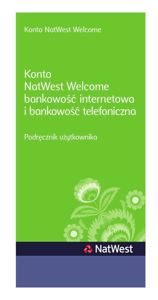 Konto NatWest Welcome Konto NatWest Welcome bankowość internetowa i bankowość telefoniczna Podręcznik użytkownika Witamy w przewodniku po usługach bankowości internetowej i bankowości telefonicznej NatWest Jeżeli nie mają Państwo czasu, aby zarządzać finansami w trakcie normalnych godzin pracy banku lub odwiedzenie oddziału sprawia Państwu trudność, nowe usługi: bankowość internetowa i bankowość telefoniczna są adresowane właśnie do Państwa. Obie usługi są ze sobą powiązane. Jakiekolwiek instrukcje dotyczące płatności ustalone albo poprzez bankowość internetową, albo telefoniczną, będą dostępne w obu usługach. 2 Spis treści Strona Bankowość internetowa 5 Jak zabezpieczyć siebie i komputer przed oszustwem 9 Bankowość telefoniczna 14 3 Usługi bankowości internetowej i telefonicznej Poniższa tabela przedstawia wszystkie usługi dostępne dzięki bankowości internetowej i telefonicznej rodzaje bankowości bankowość telefoniczna bankowość internetowa na stronie natwest.com przelewy przelewy między własnymi kontami 4 4 przelew na konto innej osoby 4 4 zarządzanie pieniędzmi – 4 zarządzanie poleceniami zapłaty oraz zleceniami stałymi 4 4 zakup waluty obcej 4 – kontrola bieżących transakcji 4 4 4 4 4 4 zapłata rachunku zarządzanie kontem bieżący bilans wyciągi 4 Rozpoczęcie korzystania z usługi bankowości internetowej Kod aktywacyjny, który Państwo otrzymali, umożliwia aktywację usługi bankowości internetowej i natychmiastowe rozpoczęcie korzystania z niej. W tym celu należy postępować zgodnie z poniższymi instrukcjami: 1. Wejdź na stronę natwest.com/welcome i wybierz opcję Log In (Logowanie). 2. Wprowadź numer klienta – składa się on z daty urodzenia oraz unikalnego numeru dostarczonego podczas zgłoszenia. 3. Zaznacz pola w celu poinformowania o posiadaniu nowego kodu aktywacyjnego. 4. Następnie zostaniesz poproszony/-a o wprowadzenie kodu aktywacyjnego, a potem o wybranie numeru PIN (Osobistego Numeru Identyfikacyjnego). Należy wybrać numer PIN i hasło łatwe do zapamiętania, ponieważ będą one potrzebne podczas każdego logowania do usługi bankowości internetowej. 5. Możesz rozpocząć korzystanie z bankowości internetowej. W przyszłości, aby zalogować się, wystarczy przygotować numer klienta, numer PIN oraz hasło. Nowy numer PIN oraz hasło będą również używane w usłudze bankowości telefonicznej. Oznacza to, że niezbędny jest tylko jeden zestaw informacji zabezpieczających. Danych zabezpieczających nie należy ujawniać. Po pierwszym zalogowaniu – podczas każdego następnego zalogowania – przedstawiona będzie data i godzina ostatniego udanego dostępu do usługi. 5 Wskazówki dotyczące bankowości internetowej Bankowość internetowa umożliwia swobodne zarządzanie pieniędzmi o dowolnej porze – bez potrzeby odwiedzania oddziału. Poniżej przedstawiono krótkie podsumowanie transakcji bankowych, które można wykonać przez internet. Opcja Accounts Summary (Moje konto) umożliwia: • podgląd stanu Konta NatWest Welcome, • podgląd szczegółów konta oraz zmianę nazw używanych do opisu konta w serwisie internetowym. Opcja Statements (Wyciągi) umożliwia: • podgląd transakcji dokonanych na koncie z ostatnich sześciu miesięcy, • pobieranie wyciągów przeznaczonych do wielu różnych pakietów oprogramowania finansowego, • wyszukiwanie określonych transakcji. Opcja Transfers (Przelewy) umożliwia: • natychmiastowe przeniesienie środków pieniężnych pomiędzy własnymi kontami NatWest, • podgląd, edycję lub anulowanie przelewu zaplanowanego, • podgląd listy bieżących przelewów. Opcja Payments (Płatności) umożliwia: • zapłatę rachunków na rzecz dużych i małych firm oraz osób prywatnych, • podgląd, zmianę, usunięcie lub dodanie odbiorcy, • podgląd, zmianę lub usunięcie zaplanowanej płatności, • podgląd listy ostatnich płatności, • utworzenie nowego zlecenia stałego, • podgląd lub anulowanie istniejącego zlecenia stałego, • podgląd lub anulowanie istniejącego polecenia zapłaty. Opcja Account Admin (Administracja konta) umożliwia: • aktywację nowej Karty Debetowej lub Karty do Przelewu Pieniędzy NatWest Welcome. Opcja Change Settings (Zmiana ustawień) umożliwia: 6 • zmianę hasła używanego do zalogowania w serwisie, • zmianę nazw używanych do opisu kont w serwisie internetowym. W razie potrzeby prosimy o kontakt z Polskim Centrum Telefonicznym pod numerem telefonu 0845 246 7979 (+44 161 931 9669 z zagranicy). Można też skorzystać z telefonu tekstowego – 0845 900 5961 (+44 1189 639 148 z zagranicy). Usługa jest dostępna tylko w języku angielskim. Anglojęzyczny dział pomocy bankowości internetowej jest dostępny pod numerem telefonu 0845 60 50 789 (+44 8702 430 464 z zagranicy). Jak zapłacić rachunek i przesłać pieniądze na inne konto w Wielkiej Brytanii Po aktywacji usługi bankowości internetowej można zapłacić wszystkie rachunki przez internet. Płatności dokonane przed godziną 18:30 zazwyczaj są realizowane w ciągu trzech dni roboczych. Należy upewnić się, że mają Państwo pod ręką rachunek do zapłaty. Prosimy postępować według poniższych instrukcji. Zdefiniowanie nowej płatności Etap 1 • W menu po lewej stronie należy wybrać opcję Payments (Płatności). Etap 2 Zapłata dla dużej firmy • Wybierz opcję podglądu, usunięcia lub dodania odbiorcy. • Wybierz opcję dodania nowego odbiorcy. • Wybierz kategorię, która w najlepszy sposób opisuje rachunek, a następnie wybierz przycisk Next (Dalej). • Wybierz instytucję, której chcesz zapłacić, a następnie wybierz przycisk Next (Dalej). • Wprowadź referencje dotyczące rachunku, potem potwierdź konto, z którego chcesz dokonać płatności, a następnie kliknij przycisk Next (Dalej). 7 Etap 3 Zapłata dla mniejszej firmy lub osoby prywatnej • Wybierz opcję podglądu,
