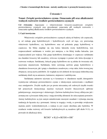 Ćwiczenie 1 Temat: Związki powierzchniowo czynne. Oznaczanie