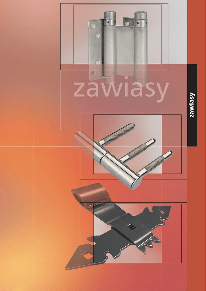 zawiasy zawiasy HURTOWNIA OKUĆ BUDOWLANYCH zawiasy HURTOWNIA OKUĆ BUDOWLANYCH zawiasy wkręcane zawiasy wkręcane, nasadki zawiasy wkręcane Kod ZAW-0201 Kod Nazwa i wymiary Schemat ZAW-0261 Nazwa i wymiary Schemat Skrzydełko dolne 13,5 x 30 mm ocynk żółty Zawias 13 x 45 mm lakier biały stalowy, wkręcany stalowy, przykręcano-wkręcany ZAW-0272 ZAW-0202 Zawias 15 x 50 mm ocynk biały ZAW-0203 Zawias 15 x 50 mm ocynk żółty Zawias wkręcany 3-częściowy 16 mm ocynk żółty stalowy, wkręcany stalowy, przykręcano-wkręcany ØZ DŁ ØCZ HG HD H RB 12 40 20 [mm] [mm] [mm] [mm] [mm] [mm] [mm] ZAW-0211 Zawias 12 x 35 mm ocynk biały ZAW-0212 Zawias 12 x 35 mm ocynk żółty ZAW-0221 Zawias 12 x 50 mm ocynk biały ZAW-0222 Zawias 12 x 50 mm ocynk żółty ZAW-0231 Zawias 13,5 x 60 mm ocynk biały ZAW-0232 Zawias 13,5 x 60 mm ocynk żółty 12 30 7,4 20 43 7,4 20 13,5 53,5 9 26 20 20 40 20 26 52 22 ZAW-0281 Zawias 13,5 x 60 mm + W-70 – 2 komplety (górny ocynk biały + dolny czarny) ZAW-0282 Skrzydełko dolne W-70 białe ZAW-0283 Skrzydełko dolne W-70 brązowe ZAW-0284 Skrzydełko dolne W-70 czarne stalowy, przykręcano-wkręcany stalowy, wkręcany ZAW-0241 Zawias 13 x 45 mm retro ocynk żółty ZAW-0001 Zawias Otlav P50 brązowy górny ZAW-0002 Zawias Otlav P50 brązowy dolny ZAW-0003 Zawias Otlav P50 ocynk biały górny ZAW-0004 Zawias Otlav P50 ocynk biały dolny ZAW-0005 Zawias Otlav P50 ocynk żółty górny ZAW-0006 Zawias Otlav P50 ocynk żółty dolny stalowy, wkręcany stalowy, przykręcano-wkręcany GÓRNY + DOLNY Zawias Otlav 055 ZAW-0251 Zawias 13,5 x 60 mm ze stabilizacją ocynk biały ZAW-0252 Zawias 13,5 x 60 mm ze stabilizacją ocynk żółty ZAW-0011 13 mm górny ZAW-0012 13 mm dolny ZAW-0013 14 mm górny ZAW-0014 14 mm dolny ZAW-0015 16 mm górny ZAW-0016 16 mm dolny ØZ DŁ ØCZ HG HD H RB 13 35 8,5 22 22 44,2 12,8 14 40 9 24 24 48,2 13,7 16 47 10,5 26 26 52,2 15,3 [mm] [mm] [mm] [mm] [mm] [mm] [mm] stalowy, wkręcany GÓRNY + DOLNY 122 strona stalowy, ocynk żółty, wkręcany strona 123 zawiasy HURTOWNIA OKUĆ BUDOWLANYCH zawiasy HURTOWNIA OKUĆ BUDOWLANYCH nasadki, zawiasy wkręcane zawiasy wkręcane Kod Kod Nazwa i wymiary Schemat H Nazwa i wymiary Schemat ZAW-0053 Zawias Otlav 495 16 mm ocynk żółty górny ZAW-0057 Zawias Otlav 495 16 mm do stali ocynk żółty dolny [mm] ZAW-0021 Zawias Otlav 100 nikiel górny ZAW-0022 Zawias Otlav 100 nikiel dolny ZAW-0023 Zawias Otlav 100 mosiądz górny ZAW-0024 Zawias Otlav 101 mosiądz dolny 80,2 80,5 stalowy, ocynk żółty, wkręcany, regulowany w 3 wymiarach GÓRNY + DOLNY stalowy, wkręcany, dla ZAW-0024 czop pokryty nylonem Zawias 3d GÓRNY + DOLNY ZAW-0021 Zawias Otlav 100 nikiel górny ZAW-0025 Zawias Otlav 102 do stali nikiel dolny ØZ DŁ ØCZ HG HD H RB1 RB2 38 8 41 41 82–85 22 22–25 41 41 82–86 [mm] [mm] [mm] [mm] [mm] ZAW-0091 14 mm 14 ZAW-0092 16 mm 16 45 10 ZAW-0093 20 mm 20 51,5 12 [mm] 51,5 56,5 108–113 [mm] [mm] 22 22–26 32 27–32 stalowy, ocynk żółty, wkręcany, regulowany w 3 wymiarach stalowy, wciskano-wkręcany, dla ZAW-0025 czop pokryty nylonem Nasadki OTLAV Nasadki OTLAV GÓRNY + DOLNY aluminiowe nylonowe ZAW-0031 Zawias Otlav 499 z unoszeniem ocynk biały biały stalowy, wkręcany, regulowany w 3 wymiarach, z unoszeniem ZAW-0041 Zawias Otlav 488 Exacta ocynk żółty Lewy ZAW-0042 Zawias Otlav 488 Exacta ocynk żółty Prawy ZAW-0051 14 mm górny ZAW-0052 14 mm dolny ZAW-0053 16 mm górny ZAW-0054 16 mm dolny ZAW-0055 20 mm górny ZAW-0056 20 mm dolny ØZ DŁ ØCZ HG HD [mm] [mm] [mm] [mm] [mm] 124 strona Ø 20 mm ZAW-0121 brązowy ZAW-0102 ZAW-0112 ZAW-0122 chrom ZAW-0103 ZAW-0113 ZAW-0123 chrom matowy ZAW-0104 ZAW-0114 ZAW-0124 czarny ZAW-0105 ZAW-0115 ZAW-0125 mosiądz matowy ZAW-0106 ZAW-0116 ZAW-0126 nikiel matowy ZAW-0107 ZAW-0117 ZAW-0127 mosiądz patyna Ø ZAW-0131 ZAW-0132 14 mm ZAW-0133 ZAW-0134 16 mm ZAW-0135 ZAW-0136 20 mm Nasadki LINEA CALI metalowe H RB1 RB2 22 22–25 [mm] [mm] mosiądz Ø ZAW-0151 14 mm ZAW-0152 16 mm metalowe Ø 16 mm Ø 20 mm chrom mat ZAW-0161 ZAW-0164 nikiel ZAW-0162 ZAW-0165 patyna ZAW-0163 ZAW-0166 [mm] 14 38 9 37,5 42 79,5– 82,5 16 45 10 38 42 80–85 22 22–27 20 55 12 51 56,5 107,5– 112,5 32 27–32 Nasadki LINEA CALI retro Blokada antywyważeniowa ZACZEP metalowe stalowy, ocynk żółty, wkręcany, regulowany w 3 wymiarach GÓRNY + DOLNY Ø 16 mm ZAW-0111 Nasadki OTLAV retro stalowy, wkręcany samozamykający Zawias Otlav 495 Exacta Ø 14 mm ZAW-0101 stalowa, ocynk żółty mosiądz patyna Ø ZAW-0171 ZAW-0172 14 mm ZAW-0181 listwa + zaczep ZAW-0173 ZAW-0174 16 mm ZAW-0182 listwa ZAW-0175 ZAW-0176 20 mm LISTWA strona 125 zawiasy HURTOWNIA OKUĆ BUDOWLANYCH zawiasy HURTOWNIA OKUĆ BUDOWLANYCH zawiasy wpuszczane zawiasy wahadłowe zawiasy wpuszczane zawiasy wahadłowe Kod Nazwa i wymiary Schemat nikiel A C E [mm] [mm] [mm] Zawias Kubica 6200 chrom matowy 75 mm ZAW-0401 ZAW-0411 ZAW-0421 75 45 32 ZAW-0302 Zawias Kubica 6200 nikiel matowy 100 mm ZAW-0402 ZAW-0412 ZAW-0422 100 55 40 125 mm ZAW-0403 ZAW-0413 ZAW-0423 125 70 48 150 mm ZAW-0404 ZAW-0414 ZAW-0424 150 80 56 175 mm ZAW-0405 ZAW-0415 ZAW-0425 172 90 65 200 mm ZAW-0406 ZAW-0416 ZAW-0426 187 90 65 do drzwi bezprzylgowych materiał znal max. szer. 900 mm strona uniwersalny max. wys. 2100 mm kąt otwarcia 180° głębokość 45 kg (2 zawiasy) min. gr. 32 mm 30 mm ( w skrzydle) 30 mm (w ościeżnicy) regulacja ZAW-0311 Zawias Kubica 6700 chrom matowy ZAW-0312 Zawias Kubica 6700 nikiel matowy w 3 wymiarach producent – Metalplast Częstochowa mosiądz nikiel patyna stal nierdzewna szary A C E [mm] [mm] [mm] do drzwi bezprzylgowych materiał znal 75 mm ZAW-0441 ZAW-0451 ZAW-0461 ZAW-0471 ZAW-0481 75 46 25,5 max. szer. 900 mm strona uniwersalny 100 mm ZAW-0442 ZAW-0452 ZAW-0462 ZAW-0472 ZAW-0482 100 50 31,5 max. wys. 2100 mm kąt otwarcia 180° 125 mm ZAW-0443 ZAW-0453 ZAW-0463 ZAW-0473 ZAW-0483 125 58 41 głębokość 37 mm ( w skrzydle) 150 mm ZAW-0444 ZAW-0454 ZAW-0464 ZAW-0474 Z