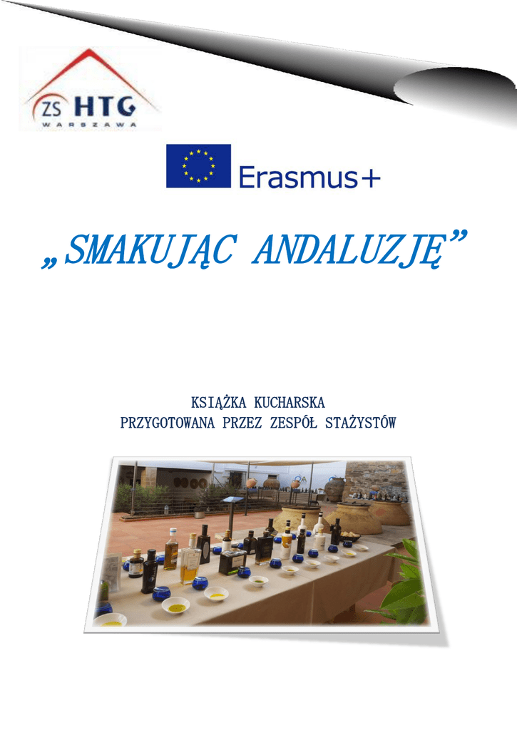 „SMAKUJĄC ANDALUZJĘ” KSIĄŻKA KUCHARSKA PRZYGOTOWANA PRZEZ ZESPÓŁ STAŻYSTÓW SPIS TREŚCI 1. Andaluzja – kraina oliwy, wina, corridy i flamenco 2. Tapas 3. Sałatki 4. Zupy 5. Najpopularniejsze dania główne 6. Desery 7. Słowniczek kulinarny 1. ANDALUZJA, region zajmujący południową część Hiszpanii, często nazywana jest „pomostem między kontynentami”, „bramą Europy”, „tyglem kultur” czy „miejscem spotkania mórz”. Wszystkie te określenia są w pełni uzasadnione. Położona pomiędzy Europą a Afryką, między Morzem Śródziemnym a Oceanem Atlantyckim, przez tysiąclecia była obszarem rozwoju różnorodnych kultur. W Andaluzji odnajdziemy wszystko, co zazwyczaj kojarzy się z Hiszpanią: flamenco, fiesta, korrida, piaszczyste plaże, bary tapas i wino sherry. Trudno wyobrazić sobie bardziej hiszpański region Półwyspu Iberyjskiego. Powierzchnia Andaluzji sięga 87 597 km², co stanowi 17,3% całości terytorium Hiszpanii. Jest drugim co do wielkości regionem autonomicznym w kraju i może poszczycić się największą liczbą ludności (8 039 399 mieszkańców w 2007 roku). Składa się z ośmiu prowincji o nazwach: Almería, Kadyks, Kordowa, Granada, Huelva, Jaén, Malaga i Sewilla. Miasto Sewilla jest oficjalną stolicą regionu. Andaluzja jest krainą kontrastów. Występująca tam różnorodność krajobrazów i form ukształtowania powierzchni tworzy bogaty wachlarz obejmujący ciepłą dolinę Gwadalkiwiru, zalesione góry, wulkaniczne pejzaże pustyni Tabernas aż po ośnieżone szczyty Sierra Nevada. Dzisiejsza Andaluzja to nowoczesny region z dobrze rozwiniętą infrastrukturą, dynamiczną gospodarką i bogatą ofertą wyrobów i usług. Władze Andaluzji Andaluzja była czwartym regionem autonomicznym, który został wydzielony na administracyjnej mapie Hiszpanii, złożonej w chwili obecnej z 17 regionów autonomicznych. Statut Regionu został wprowadzony Ustawą 6/1981, która uznając historyczną odrębność i tożsamość Andaluzji, przyznała jej prawo do utworzenia rządu autonomicznego. Władzę wykonawczą sprawuje Rada Ministrów, której przewodniczy Premier Autonomicznego Rządu Andaluzji (Junta de Andalucía). Żródło:www.extenda.pl Corrida w Ubedzie. 2. TAPAS Oliwki zakąskowe Składniki: 25 oliwek zielonych 25 plasterków szynki 25 plasterków sera żółtego Sposób przygotowania: Każdą oliwkę zawinąć w plasterek sera żółtego i szynki, przekłuć wykałaczką. Wstawić do piekarnika rozgrzanego do 220º C. Zapiekać 10 minut. Montaditos to małe kanapki bardzo popularne w Hiszpanii, serwowane nie tylko w barach tapas, lecz również w niektórych kawiarniach na ciepło i na zimno. Na kromkach pieczywa układa się przeróżne dodatki: grillowane warzywa, pikle, długo dojrzewające szynki, sery, chorizo, owoce morza. Tost z oliwą i pomidorem Składniki: bagietka oliwa z oliwek extra virgen dojrzały pomidor sól Sposób przygotowania: Bagietkę pokroić na podłużne kawałki i opiec w piekarniku lub tosterze. Gorące tosty polać oliwą, położyć plaster pomidora, delikatnie posolić. Grzanki z szynką serrano i karczochem Składniki: 6 kromek bagietki 1 ząbek czosnku oliwa 6 plastrów szynki serrano 6 grillowanych karczochów z oliwy 6 kawałków pieczonej papryki (bez skówki) Wykałaczki Sposób przygotowania: Kromki opiekamy w tosterze lub na suchej patelni. Smarujemy przekrojonym ząbkiem czosnku, układamy plaster szynki, karczocha i paprykę. Spinamy wykałaczką. Grzanki z chorizo i papryką Składniki: 6 kromek bagietki aioli 18 plasterków chorizo Pieczona papryka bez skórki 6 marynowanych pieczarek 6 oliwek Wykałaczki Sposób przygotowania: Opieczone kromki smarujemy aioli, układany chorizo, paprykę, pieczarki i oliwkę, spinamy wykałaczką. Grzanki z tuńczykiem i oliwkami Składniki: 6 kromek bagietki 1 puszka tuńczyka w sosie własnym 1 łyżka posiekanej drobno czerwonej cebuli 3-4 łyżeczki aioli sól, pieprz zielone oliwki. Sposób przygotowania: Tuńczyka odsączamy i rozdrabniamy. Dodajemy posiekaną cebulę, aioli, doprawiamy solą i pieprzem, na kromkach układamy pastę i oliwki Sos Tapenade Pyszne połączenie hiszpańskich oliwek ze świeżym czosnkiem, słonymi filecikami anchois i delikatnymi migdałami. Najlepsze jako samodzielna przystawka z grzankami lub jako dip do warzyw i sałatek. Składniki: ½ szklanki migdałów bez skórki 1 szklanka zielonych oliwek 1 szklanka czarnych oliwek 2 ząbki czosnku 4 fileciki anchois 2 łyżeczki oliwy z oliwek suszone oregano Sposób przygotowania: Zmielić migdały. Posiekać anchois, oliwki i czosnek, zmiksować w blenderze na gładką masę. Wymieszać z migdałami, oliwą i oregano. Podawać jako przystawkę z grzankami lub krakersami. 3. SAŁATKI Sałatka z ciecierzycą i oliwkami Składniki: 2 filiżanki ciecierzycy z puszki 2/3 filiżanki czarnych oliwek bez pestek ½ filiżanki pokrojonej w kostkę papryki 1/3 filiżanki pokrojonej cebulki dymki ¼ filiżanki posiekanej kolendry 1 łyżka oliwy z oliwek 1 ½ łyżki octu winnego 1 jajko na twardo sól pieprz Sposób przygotowania: Wymieszać w misce ciecierzycę, oliwki, paprykę, dymkę i kolendrę. Dodać oliwę i ocet winny, następnie posiekane jajko na twardo, delikatnie wymieszać. Doprawić solą i pieprzem. Podawać w temperaturze pokojowej. Ensalada Mixta Składniki: 80g sałaty różnego rodzaju 1 jajko 4-5 szt. pomidorków koktajlowych 30g tuńczyka w zalewie Oliwa, sól, pieprz Sposób przygotowania: Liście sałaty rozdrobnić na mniejsze kawałki. Jajko ugotować na twardo i zetrzeć na tarce o grubych oczkach. Pomidorki koktajlowe przekroić na pół. Sałatę ułożyć na talerzu, następnie odsączonego wcześniej tuńczyka. Posypać jajkiem i obłożyć pokrojonymi pomidorkami. Oprószyć delikatnie solą i pieprzem, polać oliwą z oliwek. 4. ZUPY Gazpacho Słynny hiszpański chłodnik na bazie pomidorów. Wywodzi się z Andaluzji, ale jest popularny w