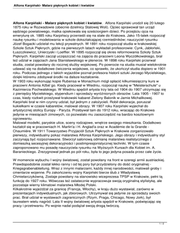Alfons Karpiński - Malarz pięknych kobiet i kwiatów. Alfons Karpiński urodził się 20 lutego