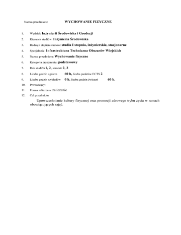 WYCHOWANIE FIZYCZNE Wydział: InŜynierii Środowiska i
