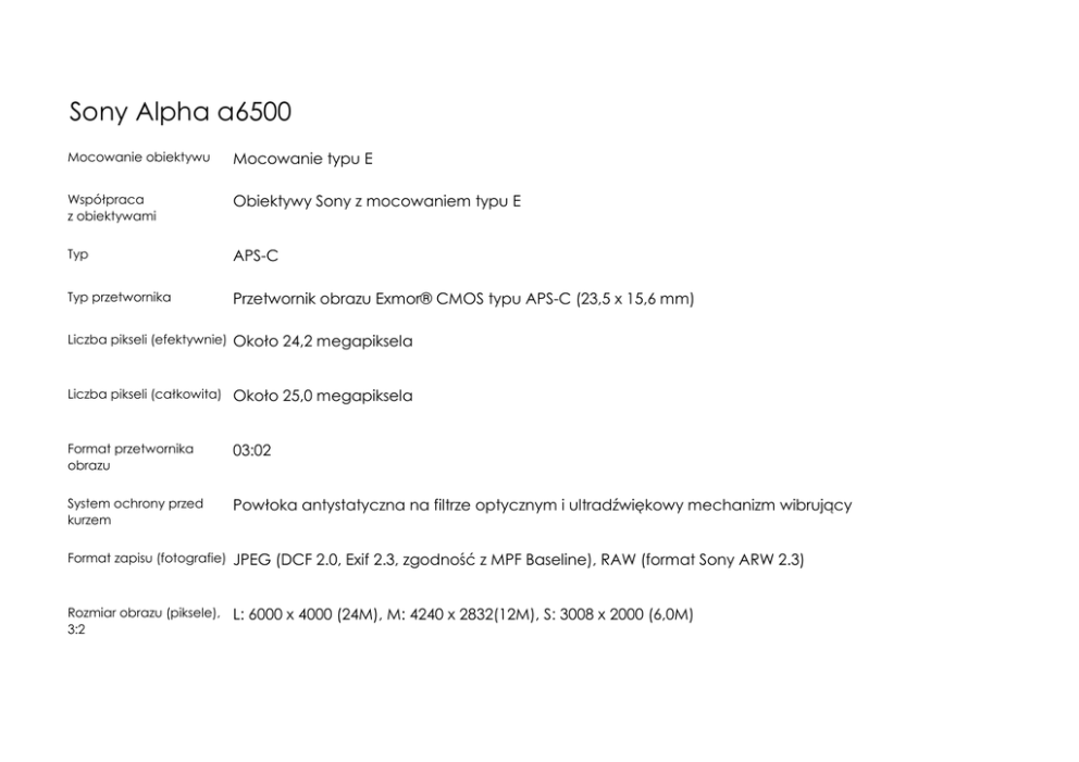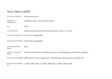Pobierz plik Sony Alpha a6500 DANE TECHNICZNE