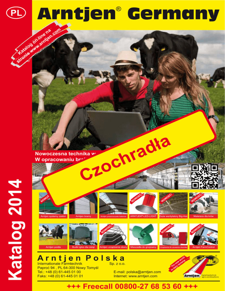 PL Arntjen Germany ® na com e . lin tjen on arn g . lo ww a t Ka ie w n ro t s a ł ad r h oc Katalog 2014 Nowoczesna technika w oborze W opracowaniu brali udział rolnicy z całego świata! z C Ć! Ć! OW N Arntjen bramy Arntjen przezroczyste kalenice ARNTJEN®-LED-LIGHT N Duże wentylatory Big-Ass Budki igloo dla cieląt Materace dla krów Ć! Ć! OŚ W Arntjen poidła OŚ OW N Ć! NO Ć! OŚ OW N Arntjen systemy zasłon Ć! OŚ OŚ OW OŚ W NO Arntjen urządzenia obory Mieszadła do gnojowicy Urządzenia do usuwania obornika OŚ W NO Arntjen FarmControl Arntjen Polska Internationale Farmtechnik Paproć 94 , PL 64-300 Nowy Tomyśl Tel.: +48 (0) 61-445 01 00 Faks: +48 (0) 61-445 01 01 Sp. z o.o. E-mail: [email protected] Internet: www.arntjen.com +++ Freecall 00800-27 68 53 60 +++ ® Arntjen Polska Internationale Farmtechnik Paproć 94 PL 64-300 Nowy Tomyśl Tel.: +48 (61) 445 01 00 Faks: +48 (61) 445 01 01 Sp. z o.o. Email:[email protected] Internet:www.arntjen.com Curtain: otwieranie od góry – zwijanie na dole Curtain Dual: otwieranie u góry / na dole i zacienianie ISO-Lift-Fenster: okna przesuwne Bramy z folii Świetlik kalenicowy ISO Świetlik z klapami Świetlik Germany Wentylator przeznaczony do montażu w hali udojowej Zalecane wymiary, dane techniczne niewiążące. Ceny w Złoty bez VAT ex works. Stan: 01.02.14 Zastrzegamy sobie możliwość rozwoju produktów, wprowadzania zmian konstrukcyjnych i zmiany cen. Sp. z o.o. Email:[email protected] Internet:www.arntjen.com Artykuł Nr art. Opis 3. Świetliki (Czochradło dla krów / cieląt) Czochradło „Arntjen first class cow brush“ zastępuje szczotkowanie krów i usuwa pasożyty w możliwie najbardziej delikatny sposób. System 2-szczotkowy zapewnia czyszczenie i masaż całego ciała. 4. Wentylatory Nowy model istniejącego od 10 lat, sprawdzonego czochradła First Class Cow Brush 2000 posiada następujące cechy: - Silnik opracowany specjalnie dla tego modelu, zapewniający min. 25% oszczędność energii - Według badań w oborze z 60 zwierzętami czochradło jest wykorzystywane 3650 godz. rocznie. W tym przypadku oszczędność energii elektrycznej sięga ok. 110 Eur rocznie (dane dla Niemiec). - Silnik i podzespoły elektroniczne tworzą jeden układ - 2 m przewód przyłączeniowy oraz wtyczka z bolcem uziemiającym - Łożysko ślizgowe z tworzywa sztucznego niewymagające konserwacji zamontowane na pionowej szczotce - Bardziej stabilny, nowy sposób mocowania przekładni na ramie First Class Cow / Calf Brush Czochrało 2000 doskonale sprawdza się w praktyce od ponad 10 lat. Model ten został zwycięzcą ankiety klienta, a jego liczne zalety to: 5. Roll Maty NOWOŚĆ: First Class Cow Brush EC 2012 (Czochradło dla krów) 2. Bramy-Rolety 1. Curtain Polska - bardzo długa trwałość wytrzymałych na ścieranie i zginanie szczotek nylonowych - łatwa zmiana kierunku obrotów dzięki opatentowanej konstrukcji - bezusterkowa praca - obroty we wszystkich kierunkach przy jednoczesnym zachowaniu wyjątkowej trwałości i niezawodności - nadaje się do stosowania wewnątrz i na zewnątrz - 100% wartość odsprzedaży. 6. Poidła Arntjen Internationale Farmtechnik Paproć 94 PL 64-300 Nowy Tomyśl Tel.: +48 (61) 445 01 00 Faks: +48 (61) 445 01 01 7. Czochradła Dane szczegółowe: Calf brush (czochradło dla cieląt) 05887 First Class calf brush (czochradło dla cieląt) 230 V, 50 Hz (UE), zestaw kompletny 04220 Osprzęt czochradła ze sprężyną 01482 03786 03158 Sprężyna zapasowa 01484 Osprzęt czochradła ze sprężyną Zastrzegamy sobie możliwość rozwoju produktów, wprowadzania zmian konstrukcyjnych i zmiany cen. 7. Czochradła Strona 1 10. Mieszadła 03858 Szczotka zapasowa Zalecane wymiary, dane techniczne niewiążące. Ceny w Złoty bez VAT ex works. Stan: 01.02.14 9. Wygrodzenia First Class cow brush EC 2012 (czochradło dla krów) z silnikiem energooszczędnym 230 V, 50 Hz (UE, USA/CAN), zestaw kompletny First Class cow brush 2000 (czochradło dla krów) 230 V, 50 Hz (UE), zestaw kompletny First Class cow brush 2000 (czochradło dla krów) 230 V, 60 Hz (USA/CAN), zestaw kompletny 11. Pompy do gnojowicy Model 2000 : 230 V/50 Hz : 60 obr./min : ok. 135 kg : 1100 mm 12. Solar/Photovoltaik Dane techniczne: Napięcie: Obroty: Masa: Występ: 8. Budki dla cieląt - włączanie poprzez podnoszenie - zmiana kierunku obrotów przy przeciążeniu - bryzgo- i pyłoszczelny silnik - przekładnia niewymagająca konserwacji - bezproblemowy montaż na ścianie lub na podporze Model EC 2012 Arntjen Polska Internationale Farmtechnik Paproć 94 PL 64-300 Nowy Tomyśl Tel.: +48 (61) 445 01 00 Faks: +48 (61) 445 01 01 Sp. z o.o. Email:[email protected] Internet:www.arntjen.com US-Wentylatory osiowe Wentylatory mieszające Przegrody legowiskowe dla krów Drabiny paszowe diagonalne dla cieląt, młodzieży i krów Roll-Maty na legowiska Poidło z dużym otworem odpływowym Urządzenie podgrzewające z obiegiem dla systemów poideł Duży wybór mieszadeł do gnojowicy Zalecane wymiary, dane techniczne niewiążące. Ceny w Złoty bez VAT ex works. Stan: 01.02.14 Zastrzegamy sobie możliwość rozwoju produktów, wprowadzania zmian konstrukcyjnych i zmiany cen. Arntjen program ofertowy dla hodowców bydła Arntjen Curtain Arntjen Roll Maty Arntjen Wygrodzenia Mega-Wentylatory Arntjen Poidła korytowe Mieszadła do gnojowicy* Arntjen Świetliki kalenicowe Czochradła Mieszadła zatapialne elektryczne* zgarniacze obornika hydrauliczne* Budki dla cieląt Arntjen FarmControl *) odrębny katalog Przedstawiciel handlowy firmy Arntjen: A r n t j e n P o l s Sp.kz a Internationale Farmtechnik o.o. Paproć 94 , PL 64-300 Nowy Tomyśl Tel.: +48 (0) 61-445 01 00 E-mail: [email protected] Faks: +48 (0) 61-445 01 01 Internet: www.arntjen.com ®