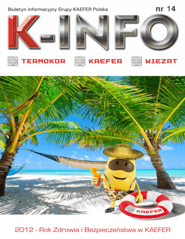 2012 - Rok Zdrowia i Bezpieczeństwa w KAEFER Aktualności nr 14 Badanie Opinii Pracowników Grupy KAEFER 2012 Drogie Koleżanki i Koledzy! W kwietniu bieżącego roku ponad 18 000 pracowników Grupy KAEFER zostało poproszonych o wyrażenie swojej opinii w pierwszym Badaniu Opinii Pracowników. Na zaproszenie odpowiedziało ponad 12 000 osób, co stanowi prawie 69% zwrot. Jak na pierwsze badanie w naszej Grupie to bardzo wysoki wynik. Warto wspomnieć, iż ponad 60% wypowiedzi było związanych z wiarą w pozytywne zmiany. Biorąc pod uwagę trudną sytuację i zmiany pokryzysowe jakie przeszliśmy w ostatnich latach, byliśmy pełni obaw o wyniki jakie osiągniemy w KAEFER SA. Na tle Grupy KAEFER, Polska wypadła jednak bardzo dobrze. Byliśmy bardzo pozytywnie zaskoczeni 60% zwrotem ankiet. Wynik ten na tle Grupy plasuje nas w średnich wynikach badania. Możemy tutaj mówić o wiarygodności wyników - grupa reprezentatywna w tego typu badaniach zaczyna się od 30% zwrotu. Bardzo dziękujemy za zaangażowanie i okazane zaufanie. Jesteśmy wdzięczni za Wasze opinie. Wszystkie odpowiedzi i komentarze dostarczą nam cennych informacji na temat wielu aspektów zatrudnienia w KAEFER. Szczególną uwagę zwrócimy na krytyczne opinie, które pomogą nam pracować nad zmianami w obszarach, które wymagają poprawy. Aktualnie trwa analiza wyników. W późniejszym czasie przedstawimy Państwu wnioski z badania i plan pracy z wynikami ankiety. Chcielibyśmy abyście Państwo dalej dzielili się z nami swoimi opiniami zarówno pozytywnymi jak również zwracającymi uwagę na miejsca do poprawy. Dlatego też stworzyliśmy adres e-mailowy: [email protected] , na który możecie kierować swoje wnioski. Możliwość taką macie także anonimowo, bezpośrednio ze strony internetowej w zakładce „Kariera – Twoja opinia”. Dziękujemy za uczestnictwo w 1-szym Badaniu Opinii Pracowników Grupy KAEFER 2012. Zmiany w Regionie Europy Wschodniej i Chin W związku z dynamicznym wzrostem Grupy KAEFER, została podjęta decyzja o decentralizacji funkcji zarządzania w organizacji. Polska nabiera znaczenia jako Centrala Regionu Europy Wschodniej i Chin. W siedzibie w Warszawie powołano nowe stanowiska managerskie – Dyrektorem Finansowym Regionu został Pan Waldemar Winkler, który pełni jednocześnie funkcję Członka Zarządu KAEFER SA, natomiast Dyrektorem Operacyjnym Regionu został Pan Tomasz Kalejta. Życzymy powodzenia i zadowolenia z pełnionych obowiązków. Waldemar Winkler Aktualności Wieści z budów Wieś z Grupy KAEFER Po godzinach 2-6 7 - 12 12 - 17 17 Sylwia Krzesiak KAEFER SA ul. Padlewskiego 6, 41-800 Zabrze z dopiskiem: „K-INFO” e-mail: [email protected] Marta Malanowska-Błaszczyk KAEFER SA ul. Zglenickiego 52 A, 09-411 Płock z dopiskiem: „K-INFO” e-mail: [email protected] Tomasz Kalejta Aktualności Utworzenie pionu Budowa Statków & Offshore Grupa KAEFER na świecie pracuje obecnie w 4 branżach: Przemysł, Offshore, Przemysł Stoczniowy i Budownictwo. Przemysły Offshore i Stoczniowy często się pokrywały, co prowadziło do nieporozumień zarówno wśród klientów jak i wewnątrz organizacji. Dlatego od 1 lipca 2012 r. oficjalnie połączono sektor Stoczniowy i Offshore. Nowa dywizja nosi nazwę Budowa Statków i Offshore. Pierwszy terminal LNG w Polsce - KAEFER SA uczestniczy w realizacji tego prestiżowego projektu Budowa terminalu gazu skroplonego LNG w Świnoujściu to pierwsza tego typu inwestycja, nie tylko w Polsce, ale i w tej części Europy. LNG (ang. Liquefied Natural Gas) to skroplony gaz ziemny. LNG jest paliwem produkowanym z gazu ziemnego poprzez usuwanie zanieczyszczeń, a następnie zmianę stanu skupienia pod wpływem ciśnienia i bardzo niskiej temperatury – około minus 160°C (-270°F). Po skropleniu otrzymuje się bardzo czyste, bezbarwne i bezwonne paliwo, bez właściwości toksycznych i korozyjnych. W skład LNG wchodzi głównie metan oraz niewielkie ilości innych węglowodorów. Skroplony gaz ziemny ma objętość około 600 razy mniejszą niż w stanie gazowym, co czyni go bardziej ekonomicznym w transporcie i magazynowaniu. Po dostarczeniu na miejsce przeznaczenia LNG jest poddawany procesowi regazyfikacji, czyli ponownego przekształcenia w gaz poprzez ogrzanie surowca w stanie ciekłym. Dostarczony gazociągami ze złóż gaz ziemny jest skraplany. LNG jest następnie przesyłany do zbiorników magazynowych, z których napełnia się specjalne tankowce – tzw. metanowce. 3 Mogą one pomieścić od kilkudziesięciu tysięcy do 250 tysięcy bm skroplonego gazu. Po przetransportowaniu ładunku drogą morską do instalacji odbiorczej (terminala importowego - regazyfikującego) ciekłe paliwo jest przesyłane do specjalnych zbiorników kriogenicznych. W terminalu importowym, LNG jest poddawany procesowi regazyfikacji, a następnie przesyłany dalej gazociągami lub cysternami - transport kolejowy lub drogowy. (Źródło info o LNG: www.polskielng.pl) Terminal LNG na Morzu Bałtyckim będzie budować grupa firm pod przewodnictwem Saipem SpA - największego dostawcy usług dla przemysłu naftowego w Europie. Dzięki terminalowi LNG, będzie możliwa dywersyfikacja kierunków dostaw gazu ziemnego, który dla Polski oznacza poprawę bezpieczeństwa energetycznego kraju. Od 2014 roku ruszą do terminalu LNG dostawy surowca z Kataru. Terminal będzie mógł importować nawet do 5 miliardów metrów sześciennych gazu rocznie z możliwością zwiększenia o 50%. KAEFER SA pozyskał zlecenie na wykonanie izolacji oraz prac malarskich na rurociągach, zbiornikach i urządzeniach. Warto zauważyć, że jest to wartościowo największe pojedyncze zlecenie w historii KAEFER Polska! Zespół projektowy jest międzynarodowy, Project Managerem jest Javier Martinez z KAEFER Hiszpania, część pre -izolacyjną wykona KAEFER AUSTRALIA, możemy również liczyć na wsparcie Centrum Kompetencji CCCL z Niemiec, które koncentruje się na izolacjach krio