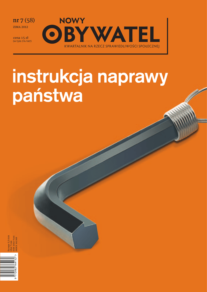 nr 7 (58) zima 2012 cena 15 zł (w tym 5% VAT) Europa 5,5 EUR USA 7 USD ISSN 2082-7644 INDEX 361569 KWARTALNIK NA RZECZ SPRAWIEDLIWOŚCI SPOŁECZNEJ Nowy Obywatel Nowy Obywatel bez wychodzenia z domu Pełny dostęp do archiwum tekstów na nowyobywatel.pl Wersja na urządzenia mobilne (formaty MOBI i EPUB) czytelnik (60 zł/rok) prenumerator (50/25 zł) klubowicz (120 zł) nowyobywatel.pl/klub Gadżety i niespodzianki Duma z wsparcia pisma EDYTORIAL 1 Nie zgadzam się, więc jestem (obywatelem) G dyby za dobrą monetę przyjąć slogany dominujące w debacie publicznej, mielibyśmy mnóstwo powodów do zadowolenia. Demokracja, społeczeństwo obywatelskie, standardy europejskie, transparentność i partycypacja, pluralizm, prawa i swobody. Takie zaklęcia nie schodzą z ust przedstawicieli władzy, dziennikarzy wielkich mediów, autorytetów politycznych i kulturalnych, a także ich interesownych lub wolontarystycznych klakierów pomniejszej rangi. A rzeczywistość skrzeczy. Gdy organizacje społeczne zbierają 2 miliony podpisów dorosłych obywateli domagających się referendum w sprawie podwyższenia wieku emerytalnego – rząd wyrzuca je do kosza. Władza wprowadza restrykcyjne prawo dotyczące zgromadzeń publicznych, czyli m.in. różnorakich form protestu społecznego. Premier przekonuje, że nie ma potrzeby organizowania referendum w sprawie zastąpienia złotówki przez euro, gdyż Polacy podjęli decyzję, głosując za akcesem do Unii Europejskiej – i choć formalnie ma rację, to nikt nie zdoła sobie przypomnieć pytania o rezygnację z narodowej waluty, a w dodatku przez już prawie dekadę sporo się zmieniło. Wbrew miażdżącym wynikom sondaży, rząd i prezydent otwierają furtkę stosowaniu organizmów modyfikowanych genetycznie. Budowę elektrowni atomowych, które na wiele lat „ustawią” polskie realia produkcji i dystrybucji energii elektrycznej, władza forsuje za pomocą kosztownej kampanii propagandowej, nie przyznając prawa głosu, a tym bardziej funduszy, zwolennikom innych technologii i rozwiązań. Takie przykłady można mnożyć. Decydenci wszystkich krajów i ustrojów mają skłonność do podobnych postaw. U nas jednak w sukurs idą im ci, którzy powinni kontrolować władze. Te same media, które przed kilkoma laty były oburzone zapowiedziami wycofania książki Gombrowicza z listy lektur, dziś milczą o protestach przeciwko znacznemu okrojeniu nauczania historii w szkołach i o tym, że również w tej sprawie rząd wyrzucił do kosza podpisy obywateli – tym razem było ich „tylko” 150 tysięcy. Te same autorytety, które oburzały się, że lekarz-łapówkarz został aresztowany, milczą dzisiaj, gdy partia rządząca ogranicza prawa obywateli do manifestowania. Ludzie, którzy pozycję społeczną zbudowali na swych zasługach z czasów dawno minionego buntu przeciwko opresyjnemu systemowi, dzisiaj utyskują na wszystkich, którzy brużdżą panującym. Cóż jest bardziej żałosnego niż dawni opozycjoniści przekonujący o potrzebie „niewzniecania waśni”? Brakuje tylko, żeby zadeklarowali, iż przy Tobie, Najjaśniejszy Panie, stoimy i stać chcemy, a porządek panuje w Warszawie… W takiej atmosferze umierają demokracja i społeczeństwo obywatelskie. Bo potraktowana poważnie demokracja nie jest ustrojem powszechnej zgody i harmonii, lecz systemem, w którym konflikt, spór i walka są czymś pożądanym. Owszem, bywają konflikty destruktywne, a eskalacja sporów może być groźna dla ładu publicznego, etosu dobra wspólnego i norm życia zbiorowego. Ale prawdziwe społeczeństwo obywatelskie to nie takie, które pokornie przytakuje władzy i zgadza się na wszystko, lecz to, które jest rozdyskutowane, zaangażowane, krytyczne, buntuje się i protestuje. Nie musi mieć racji, ale powinno mieć zapał i odwagę do wyrażania swoich racji. Bycie obywatelem to zdolność nieufności i krytyki pod adresem czy to bieżącego rządu, czy też bardziej długofalowego układu sił politycznych i towarzyszącej im ideologii. Z tego względu, choć postawa krytyczna towarzyszy nam od początku istnienia pisma, niniejszy numer w stopniu jeszcze większym niż zwykle poświęciliśmy krytyce status quo i ukazaniu alternatyw. Gdy rząd daje do zrozumienia, że powinniśmy siedzieć cicho i że nasz głos się nie liczy, a obecna władza i wiele poprzednich serwują rozwiązania spod znaku rzekomych oczywistości i konieczności – my mówimy: w demokracji mamy prawo się nie zgadzać. I z tego prawa skrzętnie korzystamy, my, obywatele. Zapoznać się z efektami tej niezgody można na kolejnych stronach. Remigiusz Okraska ANKIETA 2 SPIS TREŚCI 6 Prospołeczny gabinet cieni – ankieta „Nowego Obywatela” (część I) Przygotowaliśmy eksperyment intelektualny. Polega on na takim doborze osób i recept na rozwiązanie problemów nękających Polskę, który bazuje na perspektywie wspólnotowej, egalitarnej, prospołecznej i na serio demokratycznej. 8 Ministerstwo Zdrowia DR MAREK BALICKI Skupiłbym się na rozwiązaniu kluczowych problemów systemu ochrony zdrowia: na kwestiach dostępu do opieki zdrowotnej, finansowania ze środków publicznych i funkcjonowania NFZ. 10 Ministerstwo Mediów Publicznych BARBARA BUBULA „Niewidzialna ręka rynku” sprzyjała komercjalizacji, obniżaniu poziomu intelektualnego i kształtowaniu mentalności postkolonialnej, zniszczyła obywatelski wymiar mediów, działała antypaństwowo. 12 Ministerstwo Polityki Prorodzinnej DR HAB. EWA LEŚ Zajęłabym się palącą kwestią braku polityki przyjaznej rodzinie w głównych fazach jej cyklu życia, tj. dostatecznego wsparcia młodych par i rodziców posiadających małe dzieci, rodzin o niskich dochodach oraz rodzin, w których znajdują się ludzie w podeszłym wieku i niepełnosprawni, wymagający pomocy. 14 Ministerstwo Cyfryzacji i Nowych Mediów JAROSŁAW LIPSZYC Obywatele muszą mieć prawo do uczestnictwa w kulturze bez strachu, że p