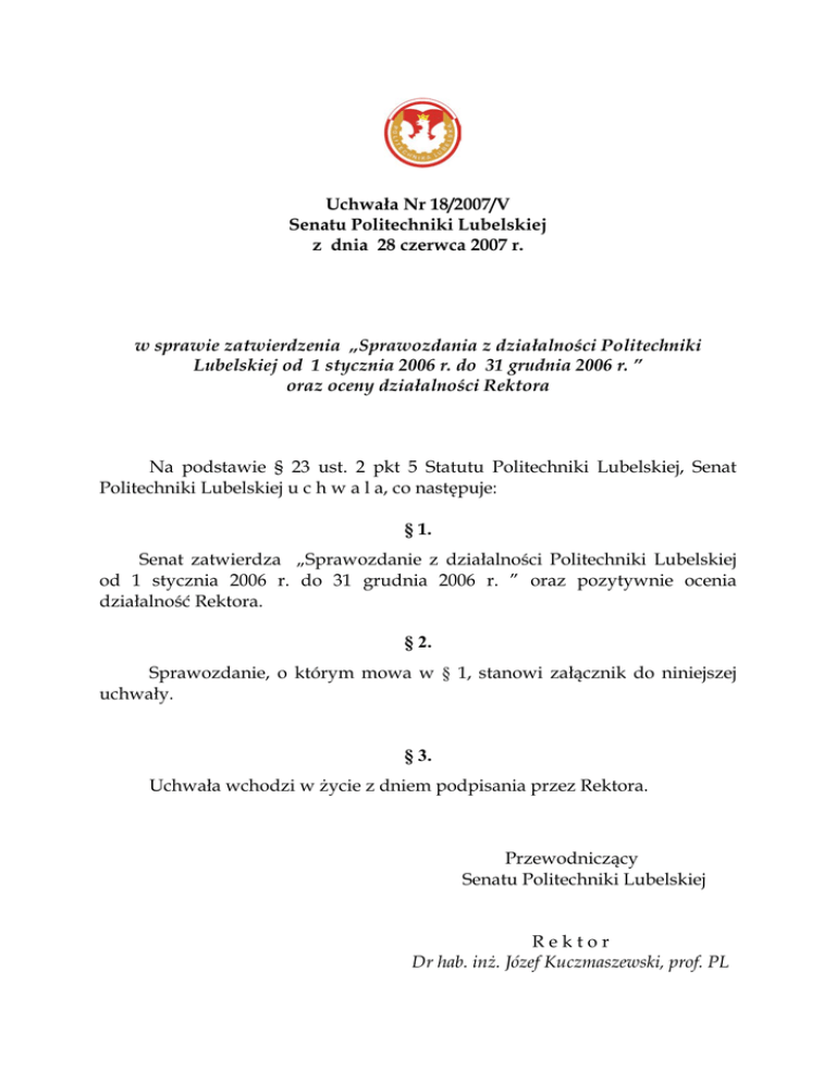 Uchwała Nr 18/2007/V - Politechnika Lubelska