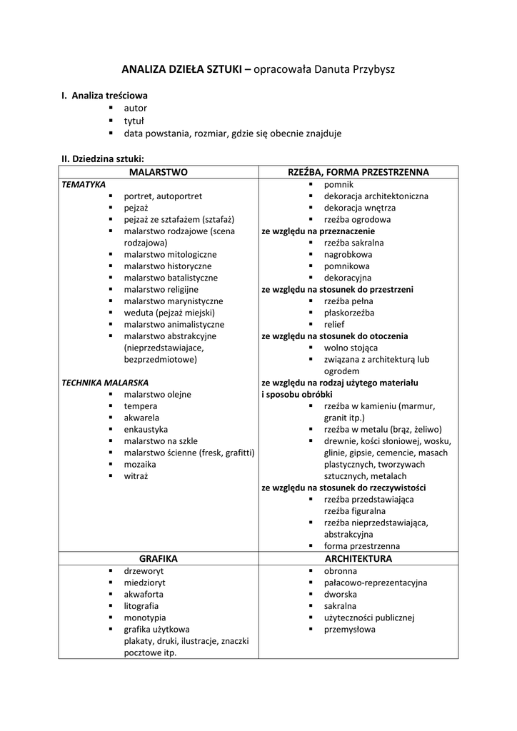 ANALIZA DZIEŁA SZTUKI – opracowała Danuta Przybysz