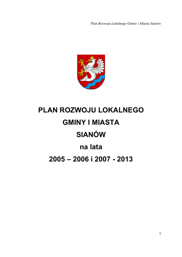 Plan Rozwoju Lokalnego Gminy i Miasta Sianów na lata