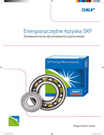 Energooszczędne łożyska SKF Zmniejszone tarcie, dla zmniejszenia zużycia energii SKF Energy Efficient 6860_EPL.indd C:9 Potęga inżynierii wiedzy 27.11.2008 9:56:22 Produkty o Raz na jakiś czas pojawia się innowacyjne rozwiązanie, które niesie w sobie potencjał wielkich korzyści, gdy zostanie zastosowane na światową skalę. Wiesz już zapewne o działających dłużej, energooszczędnych kompaktowych świetlówkach. Odkryj teraz, jaki potencjał oszczędności energii mieści się w nowych energooszczędnych (E2) łożyskach SKF. Łożyska SKF E2 stanowią rodzinę łożysk wysokiej jakości pracy, które zostały specjalnie zaprojektowane i wyprodukowane w taki sposób, aby ich moment tarcia był zmniejszony o 30% lub więcej w stosunku do momentu tarcia i tak już efektywnych standardowych łożysk SKF. To oznacza, że w porównaniu do łożysk innych producentów, redukcja momentu tarcia może być jeszcze większa. Tak jak nowa generacja żarówek, które oszczędzają energię elektryczną na świecie, energooszczędne łożyska SKF także zmniejszają zużycie energii. Charakteryzują się ultra niskim tarciem, co umożliwia producentom budowanie urządzeń o większej sprawności energetycznej, zmniejszanie całkowitych kosztów posiadania przez użytkowników końcowych oraz pomagają chronić światowe bogactwa naturalne dla nas wszystkich. 6860_EPL.indd C:10 27.11.2008 9:56:32 szczędzające energię Przy zy możliwości zastosowania w wielu milionach maszyn szyn – silnikach elektrycznych, pompach, przenośnikach nośnikach i innych aplikacjach o obciążeniu od niskiego kiego do normalnego – łożyska SKF E2 mogą w znaczącym stopniu przyczynić się do ochronyy środowiska naturalnego na świecie. W jak znaczącym ącym stopniu? Oto jeden przykład: ykład: Gdyby energooszczędne szczędne łożyska kulkowe zwykłe SKF zostały zastosowane w każdym żdym przemysłowym silniku elektrycznym w USA i w Unii Europejskiej ejskiej (przy założeniu minimum 30% 0% niższym momencie tarcia), potencjalne cjalne oszczędności energii byłyby by równe 2,46 miliarda kWh/rok. A to oszacowanie nie bierze pod uwagę milionów w silników i innych możliwych do modernizacji zacji maszyn o różnorodnych zastosowaniach na całym świecie. Ale korzyści wykraczają poza oszczędności dności energii. F E2 pracują W większości przypadków łożyska SKF z niższą temperaturą w porównaniu do standardowych łożysk SKF przy takich samych obciążeniach ach i prędkościach. Zużywają także mniej środkaa smarnego i wpływają na wydłużenie żywotności komponentów onentów i całego urządzenia. W efekcie zostaje ograniczony ony negatywny wpływ na środowisko. Symbol rozwiązania energooszczędnego wskazuje, że produkt lub rozwiązanie zastosowane wewnątrz spełnia normy SKF odnośnie zwiększonej sprawności energetycznej. 6860_EPL.indd C:11 SKF Energy Efficient 27.11.2008 9:56:34 Łożyska SKF Explorer, gdy potrzebna jest wysoka nośność W latach dziewięćdziesiątych firma SKF postawiła sobie za cel zwiększenie wydajności łożysk ponad konwencjonalne normy. Wynikiem była klasa jakości łożysk SKF Explorer, cechująca się zdecydowanie lepszymi parametrami eksploatacyjnymi. Nośność dynamiczna, poziom drgań i hałasu, odporność na zużycie i trwałość eksploatacyjna zostały w znacznym stopniu poprawione. Zmniejszono także tarcie. Od czasu ich wprowadzenia, praktycznie potwierdzono na całym świecie, że łożyska SKF Explorer uzyskują trzykrotnie dłuższą trwałość eksploatacyjną w najbardziej wymagających aplikacjach przemysłowych. W efekcie powstała nowa rodzina energooszczędnych (E2) łożysk SKF, które są zaprojektowane do uzyskiwania momentu tarcia mniejszego o 30% lub więcej w stosunku do momentu tarcia i tak już efektywnych standardowych łożysk SKF. Naszym następnym wyzwaniem było stworzenie łożysk nowej klasy jakości pracy charakteryzujących się ultra niskim tarciem, które zwiększyłyby maksymalnie sprawność energetyczną i ograniczyły wpływ na środowisko naturalne. Międzynarodowy zespół naukowców i inżynierów w Ośrodku Badawczo – Rozwojowym SKF w Holandii – reprezentujący wiedzę w zakresie konstrukcji łożysk, trybologii, metalurgii, smarowania, uszczelnień i produkcji – połączył swoje zasoby badawcze i umiejętności w celu znalezienia rozwiązania. Ponownie zaprojektowali geometrię wewnętrzną łożysk i koszyki, udoskonalili techniki montażu i opracowali formuły nowych środków smarnych. Zamienne wymiarowo z łożyskami zgodnymi z normą ISO, łożyska SKF E2 będą dostępne „z półki” w powszechnie stosowanych wymiarach, w różnych odmianach konstrukcyjnych, poczynając od jednorzędowych łożysk kulkowych zwykłych SKF E2. Opracowano także energooszczędne łożyska stożkowe SKF, które osiągają kryteria SKF w zakresie redukcji tarcia. Łożyska stożkowe SKF E2 są w chwili obecnej dostosowane do specjalnych wymagań przemysłu motoryzacyjnego. Klasa uzyskiwanych osiągów SKF Explorer Łożyska, które należą do ttej klasy uzyskiwanych osiągów są zaprojektowane do bardziej spokojnej pracy, z niższymi temperaturami ba większ trwałości niż standardowe łożyska produkowane i uzyskiwania większej zgodnie z normą ISO, w warunkach dużego obciążenia. Dzięki łożyskom łożysko SKF Explorer konstruktorzy i użytkownicy końcowi mogą wybierać między zwiększeniem gęstości mocy, m wydłużeniem trwałości eksploatacyjnej istniejącej aplikacji wydłu lub zmniejszeniem wymiarów nowej konstrukcji. 6860_EPL.indd C:12 27.11.2008 9:56:35 Łożyska SKF E2 dla uzyskiwania wysokiej sprawności Dopasuj klasę uzyskiwanych osiągów do aplikacji Standardowe łożyska SKF Energooszczędne łożyska SKF E2 ▼ Explorer stanowią wciąż najlepszy wybór. Ale w zastosowaniach o obciążeniach od lekkiego do normalnego, energooszczędne łożyska SKF o ultra 