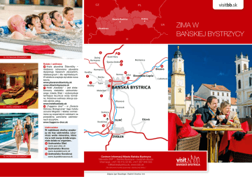 CZ visitbb.sk PL Banská Bystrica Košice UA A Bratislava H 8 10 Pływalnia Štiavničky 11 Hotel Kaskády **** 10 Pływalnia Štiavničky 9 Staré Hory Dolný Harmanec Relaks i wellness: 10 Kryta pływalnia Štiavničky – niedawno odnowiona pływalnia dysponuje basenem pływackim, relaksacyjnym i dla najmłodszych. W obiekcie znajduje się także nowa sauna. www.plavarenstiavnicky.sk www.stiavnickysauna.sk 11 Hotel „Kaskády“ – jest zlokalizowany niedaleko uzdrowiskowego miasta Sliač i wykorzystuje tamtejsze lecznicze wody termalne. Hotelowe wellness oferuje szeroki zakres usług. www.hotelkaskady.sk 12 „Fuggerov dvor“ – w „Świecie Odnowy Biologicznej“ tego hotelu uczucia błogości i relaksu wzmacniane są wspaniałymi widokami na przepiękną panoramę zaśnieżonych szczytów. www.fuggerov-dvor.sk Uzdrowiska: W najbliższej okolicy znajdują się trzy uzdrowiska. Lecznicza woda mineralna, która ma w nich swoje źródła wspaniale działa na organizm.. 13 Uzdrowisko Sliač www.spa-sliac.sk 14 Uzdrowisko Brusno www.kupelebrusno.sk 15 Uzdrowisko Kováčová www.kupelekovacova.sk Moštenica Špania Dolina 2 6 Kordíky 14 Brusno Harmanec 4 Nemce Riečka 7 Králiky 12 Selce 5 Slovenská Ľupča Ľubietová 10 Tajov 1 Malachov BANSKÁ BYSTRICA 3 Vlkanová Hronsek Sielnica 11 Kováčová 13 SLIAČ Očová 15 ZVOLEN Centrum Informacji Miasta Bańska Bystrzyca Námestie SNP 1, Bańska Bystrzyca – budynek ratusza Informacja: +421 48 415 50 85, +421 907 846 555 [email protected], www.icbb.sk „Nie dokonano korekty językowej i stylistycznej tekstu.“ Zdjęcia: Igor Staudinger, Vladimír Veverka i inni ZIMA W BAŃSKIEJ BYSTRZYCY Bańskobystrzyckie Boże Narodzenie Kolumna Maryjna Muzeum Słowackiego Powstania Narodowego Šachtičky Historia Bańskiej Bystrzycy nierozerwalnie łączy się z wydobyciem metali szlachetnych – srebra i miedzi. W przeszłości, dzięki rosnącemu bogactwu szybko zwiększało się znaczenie osady Bystrzyca. W 1255 roku węgierski król Bela IV podniósł osadę do rangi miasta i udzielił mu licznych przywilejów. Złotym okresem w historii Bańskiej Bystrzycy były wieki XV i XVI, kiedy działała tu odnosząca sukcesy spółka miedziowa Thurzo i Fuggera. Wówczas nadano Bystrzycy przydomek „miedziana“. Historyczne centrum Bańskiej Bystrzycy zdobią obecnie liczne perły architektoniczne pochodzące z tego ważnego okresu. Najnowsza historia miasta łączy się przede wszystkim ze Słowackim Powstaniem Narodowym z 1944 roku. Jej świadectwem jest pomnik i Muzeum Powstania (SNP). Radzimy: zwiedźcie Bańską Bystrzycę z przewodnikiem! Centrum Informacji Miasta Bańska Bystrzyca Nám. SNP 1, Bańska Bystrzyca, +421 48 415 50 85 +421 907 846 555 [email protected] www.icbb.sk Objavte, zažite, ochutnajte... SKI Králiky Wypożyczalnia nart ski králiky Narciarstwo biegowe – w okolicy Bańskiej Bystrzycy czekają na Państwa setki kilometrów tras dla narciarzy biegowych przygotowywanych z użyciem ratraków. Prawdziwym rajem narciarstwa biegowego są Góry Krzemnickie (Kremnické vrchy), których sercem jest Skalka. Znajdują się tam tereny dla narciarstwa biegowego wraz z tzw. stadionem „Bielej stopy SNP“ i zbiegają się trasy narciarskie biegnące dosłownie ze wszystkich stron świata. Na miejscu pokierują Państwa ujednolicone pomarańczowe tablice informacyjne. Ulubionymi punktami wypadowymi w Góry Krzemnickie są miejscowości Kordíky, Králiky, Malachov i Horné Pršany. Wysokiej jakości trasy narciarskie oferuja także Niżne Tatry i Starohorské vrchy. Narciarskie trasy biegowe: 1 Bańska Bystrzyca (Fončorda) – Uhliská – Suchý vrch (Pony farma) – Jasovo – Králiky, 10 km 2 Šachtičky – Žiare – Jelenská skala – Polianka – Donovaly, 13 km 3 Horné Pršany – sedlo Tri kríže (przełęcz) – chata Hostinec – Velestúr – Zlatá studňa – Králiky, 13 km 4 Kordíky – Kordícke sedlo (przełęcz) – Skalka – Králiky, 15 km Ośrodki narciarskie – w odległości zaledwie kilku kilometrów od Bańskiej Bystrzycy znajdziecie Państwo ośrodki narciarskie z trasami zjazdowymi wszystkich stopni trudności: Narciarstwo zjazdowe 5 środek narciarski Selce O – Čachovo (9 km) www.selce-cachovo.sk 6 środek narciarski ŠachO tičky (10 km) www.skisachticky.sk 7 ki Králiky (12 km) S www.skikraliky.sk 8 ki Turecká – Krížna (17 km) S www.skiturecka.sk 9 ark Snow Donovaly P (25 km) www.parksnow.sk Łyżwiarstwo – możliwość jazdy oferują ośrodki narciarskie w Donovaloch i Selciach – Čachove. W niektóre dni publiczność może korzystać również z tafli Stadionu Zimowego w Bańskiej Bystrzycy. www.sportbb.sk Psie zaprzęgi Najważniejsze imprezy zimowe: • Bańskobystrzyckim śladem („Banskobystrická stopa“, styczeń, Králiky) • Mistrzostwa Świata Psich Zaprzęgów (luty, Donovaly)