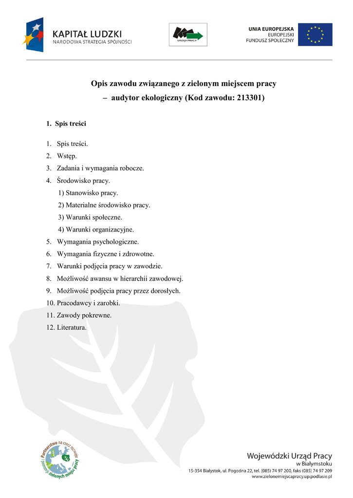Audytor ekologiczny - Wojewódzki Urząd Pracy w Białymstoku