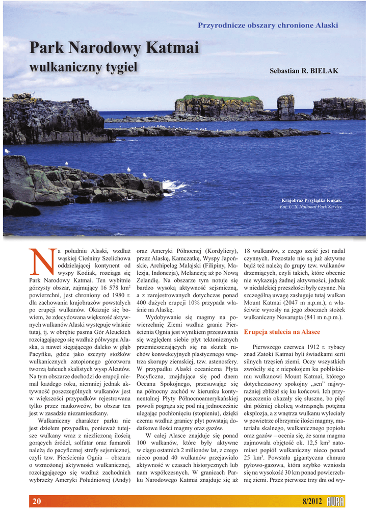 Przyrodnicze obszary chronione Alaski Park Narodowy Katmai wulkaniczny tygiel Sebastian R. BIELAK Krajobraz Przylądka Kukak. Fot. U. S. National Park Service N a poáudniu Alaski, wzdáuĪ wąskiej CieĞniny Szelichowa oddzielającej kontynent od wyspy Kodiak, rozciąga siĊ Park Narodowy Katmai. Ten wybitnie górzysty obszar, zajmujący 16 578 km2 powierzchni, jest chroniony od 1980 r. dla zachowania krajobrazów powstaáych po erupcji wulkanów. Okazuje siĊ bowiem, Īe zdecydowana wiĊkszoĞü aktywnych wulkanów Alaski wystĊpuje wáaĞnie tutaj, tj. w obrĊbie pasma Gór Aleuckich rozciągającego siĊ wzdáuĪ póáwyspu Alaska, a nawet siĊgającego daleko w gáąb PacyÞku, gdzie jako szczyty stoĪków wulkanicznych zatopionego górotworu tworzą áaĔcuch skalistych wysp Aleutów. Na tym obszarze dochodzi do erupcji niemal kaĪdego roku, niemniej jednak aktywnoĞü poszczególnych wulkanów jest w wiĊkszoĞci przypadków rejestrowana tylko przez naukowców, bo obszar ten jest w zasadzie niezamieszkany. Wulkaniczny charakter parku nie jest dzieáem przypadku, poniewaĪ tutejsze wulkany wraz z niezliczoną iloĞcią gorących Ĩródeá, solfatar oraz fumaroli naleĪą do pacyÞcznej strefy sejsmicznej, czyli tzw. PierĞcienia Ognia – obszaru o wzmoĪonej aktywnoĞci wulkanicznej, rozciągającego siĊ wzdáuĪ zachodnich wybrzeĪy Ameryki Poáudniowej (Andy) 20 oraz Ameryki Póánocnej (Kordyliery), przez AlaskĊ, KamczatkĊ, Wyspy JapoĔskie, Archipelag Malajski (Filipiny, Malezja, Indonezja), MelanezjĊ aĪ po Nową ZelandiĊ. Na obszarze tym notuje siĊ bardzo wysoką aktywnoĞü sejsmiczną, a z zarejestrowanych dotychczas ponad 400 duĪych erupcji 10% przypada wáaĞnie na AlaskĊ. Wydobywanie siĊ magmy na powierzchniĊ Ziemi wzdáuĪ granic PierĞcienia Ognia jest wynikiem przesuwania siĊ wzglĊdem siebie páyt tektonicznych przemieszczających siĊ na skutek ruchów konwekcyjnych plastycznego wnĊtrza skorupy ziemskiej, tzw. astenosfery. W przypadku Alaski oceaniczna Páyta PacyÞczna, znajdująca siĊ pod dnem Oceanu Spokojnego, przesuwając siĊ na póánocny zachód w kierunku kontynentalnej Páyty PóánocnoamerykaĔskiej powoli pogrąĪa siĊ pod nią jednoczeĞnie ulegając pocháoniĊciu (stopieniu), dziĊki czemu wzdáuĪ granicy páyt powstają dodatkowe iloĞci magmy oraz gazów. W caáej Alasce znajduje siĊ ponad 100 wulkanów, które byáy aktywne w ciągu ostatnich 2 milionów lat, z czego nieco ponad 40 wulkanów przejawiaáo aktywnoĞü w czasach historycznych lub nam wspóáczesnych. W granicach Parku Narodowego Katmai znajduje siĊ aĪ 18 wulkanów, z czego szeĞü jest nadal czynnych. Pozostaáe nie są juĪ aktywne bądĨ teĪ naleĪą do grupy tzw. wulkanów drzemiących, czyli takich, które obecnie nie wykazują Īadnej aktywnoĞci, jednak w niedalekiej przeszáoĞci byáy czynne. Na szczególną uwagĊ zasáuguje tutaj wulkan Mount Katmai (2047 m n.p.m.), a wáaĞciwie wyrosáy na jego zboczach stoĪek wulkaniczny Novarupta (841 m n.p.m.). Erupcja stulecia na Alasce Pierwszego czerwca 1912 r. rybacy znad Zatoki Katmai byli Ğwiadkami serii silnych trzĊsieĔ ziemi. Oczy wszystkich zwróciáy siĊ z niepokojem ku pobliskiemu wulkanowi Mount Katmai, którego dotychczasowy spokojny „sen” najwyraĨniej zbliĪaá siĊ ku koĔcowi. Ich przypuszczenia okazaáy siĊ sáuszne, bo piĊü dni póĨniej okolicą wstrząsnĊáa potĊĪna eksplozja, a z wnĊtrza wulkanu wyleciaáy w powietrze olbrzymie iloĞci magmy, materiaáu skalnego, wulkanicznego popioáu oraz gazów – ocenia siĊ, Īe sama magma zajmowaáa objĊtoĞü ok. 12,5 km3 natomiast popióá wulkaniczny nieco ponad 25 km3. Powstaáa gigantyczna chmura pyáowo-gazowa, która szybko wzniosáa siĊ na wysokoĞü 30 km ponad powierzchniĊ ziemi. Przez pierwsze trzy dni od wy- 8/2012 buchu zapylenie atmosfery byáo tak duĪe, Īe na oddalonej o 150 km na poáudniowy wschód wyspie Kodiak nie moĪna byáo zobaczyü zapalonej lampy naftowej trzymanej na wyciągniĊcie rĊki! Cztery dni po katastroÞe powierzchnia wyspy byáa juĪ pokryta warstwą popioáów o gruboĞci od 15 do 30 cm. W wyniku gwaátownej erupcji wnĊtrze górotworu zostaáo opróĪnione z magmy, przez co zapadá siĊ pod wáasnym ciĊĪarem caáy wierzchoáek Mount Katmai tworząc kalderĊ, czyli rozlegáe zagáĊbienie w szczytowej czĊĞci wulkanu. Dopiero po wielu latach okazaáo siĊ, Īe ów katastrofalny wybuch nie spowodowaá sam Mount Katmai, ale powstaáy na jego zboczu stoĪek pasoĪytniczy Novarupta. W ciągu trzech kolejnych dni wulkan wybuchaá jeszcze parokrotnie, w wyniku czego w promieniu kilkuset kilometrów od Mount Katmai spadáo na powierzchniĊ ziemi áącznie ponad 29 km3 gorącego, Īarzącego siĊ pumeksu oraz popioáu wulkanicznego, niszcząc po drodze wszelkie formy Īycia. Drzewa rosnące na stokach pobliskich gór zostaáy w oka mgnieniu zwĊglone podmuchami gorących gazów, a wyemitowane do atmosfery tlenki siarki przyczyniáy siĊ do powstania duĪych szych biocenoz. RoĞliny oraz drobne organizmy zostaáy zdziesiątkowane, zasypane grubą warstwą wulkanicznego popioáu lub poparzone opadami kwaĞnych deszczów. ZiemiĊ pokryáy miliony martwych ptaków uduszonych unoszącym siĊ w powietrzu pyáem. Ssaki, zwáaszcza te duĪe, jeĪeli nawet nie zginĊáy z uduszenia, padaáy z gáodu lub wycieĔczenia nie mogąc znaleĨü odpowiedniej iloĞci poĪywienia. W zasypanych popioáem wodach powierzchniowych masowo ginĊáy owady oraz ich larwy, a takĪe skorupiaki i ryby. Z czasem jednak przyroda oĪywiona powróciáa do Katmai, populacje zwierząt odbudowaáy swoją liczebnoĞü, a ekosystemy odzyskaáy utraconą równowagĊ (homeostazĊ), jednak zajĊáo to prawie 10 lat. Dopiero po upáywie 20 lat od erupcji pokáady wulkanicznych osadów caákowicie ostygáy, stwardniaáy i przeksztaáciáy siĊ w nowy typ skaáy – tuf. Choü dzisiaj w dolinie rzeki Ukak, nazwanej po erupcji Novarupta Doliną Dzi
