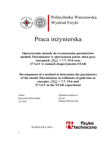 parametrów wejściowych modelu Therminator przy wykorzystaniu danych uzyskanych