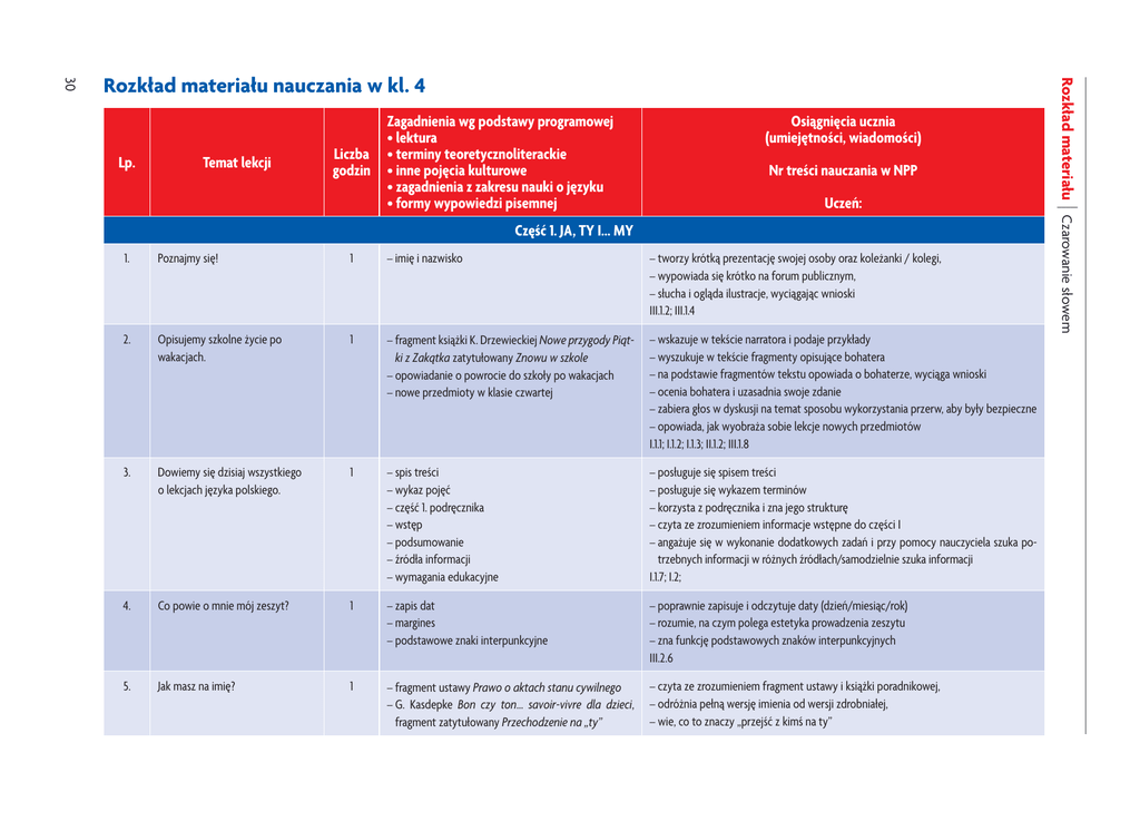Rozkład materiału nauczania w kl. 4. Czarowanie słowem