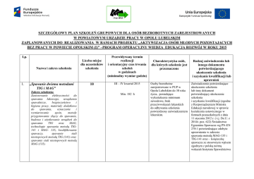 Szczegółowy plan szkoleń grupowych dla osób