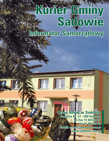 Kurier Gminy Sadowie Informator Samorządowy Urząd Gminy w Sadowiu Sadowie 86, 27 - 580 Sadowie tel./fax 15 869 24 37 tel. 15 869 24 36 e-mail: [email protected] www.sadowie.com.pl 2 Nr 1 kwiecień 2012 Kurier Gminy Sadowie Mieszkańcy Gminy Sadowie Oddajemy do Waszych rąk pierwszy numer Kuriera Gminy Sadowie, który jest Informatorem Samorządowym. Celem przedsięwzięcia jest prezentacja działań i ludzi, których osobowość, wysiłek i zaangażowanie zmieniają oblicze naszej gminy. Chcemy pokazywać to, co buduje i zachęca do dalszej pracy. Chcemy promować osoby warte naśladowania i przedsięwzięcia, które otwierają nas na świat. Sięgniemy po folklor i tradycję, przyjrzymy się wszystkim sołectwom i ludziom, którzy współdecydują o ich kształcie obecnym i najbliższej przyszłości. Stąd w pierwszym numerze tyle miejsca poświęcamy Biskupicom, które otwierają listę sołectw Gminy Sadowie. W następnym naszą uwagę skierujemy ku sołectwu Bogusławice. W kolejnych będziemy prezentować następne w porządku alfabetycznym. Niezależnie od stałych kolumn poświęconych sołectwom, kulturze czy znanym postaciom, każdorazowo będziemy starali się informować o najnowszych, ważnych z punktu widzenia lokalnych społeczności, wydarzeniach. Mamy nadzieję, że Kurier Gminy Sadowie na stałe wrośnie w krajobraz naszej gminy i stanie się oczekiwanym źródłem informacji o prawdziwych ludziach oraz rzeczywistych sukcesach i problemach. Źródłem, które pozostawi na boku rodzącą waśnie politykę. Informator Samorządowy ukazuje się, by łączyć wokół wspólnej sprawy, jaką jest nasza Gmina Sadowie. Kurier chce być Naszym wspólnym źródłem informacji, który razem będziemy zapełniać treścią. Życząc przyjemnej lektury, zachęcam do współpracy. Z poważaniem Wójt Gminy Sadowie mgr Marzena Urban - Żelazowska Szanowni Mieszkańcy ychwstania, Święta Radości i Zmartw to cy No j kie iel W a ięt Św iczej Mieszkańcom typowo roln m, Na ie isk bl e ni ól eg cz sz Święta jest wiemy, jak oczekiwany kto ło ma k Ja e. wi do Gminy Sa od niego zależy. Dlatego ele wi k ja i cia Ży ia en dz moment odro zyniosły Nam Święta Nadziei i Życia pr te by m, tki ys sz W y ym cz ży sze Jutro. a, Radości i Wiary w lep ch Du ie en dz ro Od m tki Wszys ikną e Jajeczko sprawi, że zn cn no ka iel W e jn cy dy tra Niechaj ść prawdziwej wiosny. do Ra i ło ep Ci ią łn pe na troski, a serca Przewodniczący Rady Gminy wie do Sa iny Gm jt Wó mgr inż. Mieczysław Podczasi ska ow laz Że an Urb na rze mgr Ma Kurier Gminy Sadowie Gorące serca w Sadowiu i Biskupicach Zebrali ponad półtora tysiąca więcej niż rok temu Grająca na terenie naszej gminy Wielka Orkiestra Świątecznej Pomocy pobiła rekord. Kwestując w Sadowiu i Biskupicach oraz zbierając pieniądze podczas koncertu i aukcji, zgromadziła blisko 6,5 tys. złotych. Na zdjęciu: koncert w Sadowiu poprowadzili Wioletta Zawada i Marek Czarnecki Koncert i licytację z mnóstwem atrakcji w samym Sadowiu poprowadzili Wioletta Zawada i Marek Czarnecki. Na scenie wystąpiły grupy przedszkolaków, dzieci i młodzieży z Zespołu Szkół w Sadowiu oraz SP w Biskupicach, natomiast wychowankowie Specjalnego Ośrodka Szkolno Wychowawczego w Niemienicach dali pokaz gimnastyki i tańca. W trakcie koncertu i aukcji Lidia Bojek bezpłatnie wykonywała kolorowe karnawałowe fryzury, a rodzice gimnazjalistów wystawili ciasto. Dużym wzięciem cieszyło się „swojskie żarełko” przygotowane przez Agnieszkę Cybulę. Dodatkowo przygotowane zostało stoisko z wyrobami rękodzielniczymi Koła Gospodyń Wiejskich , a muzyczną oprawę zapewnił zespół „DANCE”. Wielkie granie zakończył pokaz ogni sztucznych ufundowany przez Urząd Gminy i Gminny Ośrodek Kultury w Sadowiu. Po podliczeniu puszek okazało się, że wolontariusze ze szkoły w Biskupicach po opieką Ewy Nowak zebrali 1 241,27 zł, wolontariusz ze szkoły podstawowej i gimnazjum w Sadowiu pod opieką Bożeny Gierczak zebrali 2 207,61 zł. Z aukcji oraz za „swojskie żarełko” wpłynęło 2 956,50 zł., co dało 6 405,38 zł. czyli więcej o 1 672,99 zł, aniżeli rok temu! W skrócie Stypendium dla Kingi W gronie 200 stypendystów Europejskiego Funduszu Społecznego znalazła się uczennica Gimnazjum w Sadowiu Kinga Skrok, która jest jedną z sześciu stypendystów z całego powiatu opatowskiego. Na liście rezerwowej znalazła się natomiast Angelika Stępień. Warto dodać, że ocenie poddano blisko 800 wniosków z terenu województwa świętokrzyskiego. Bezpiecznie w przedszkolu Niepubliczny Punkt Przedszkolny „Przedszkolandia” przystąpił do realizacji programu UNICEF „Baw się i bądź bezpieczny”. Celem projektu jest przekazanie dzieciom wiedzy o tym, jak zadbać o własne bezpieczeństwo, jak unikać sytuacji ryzykownych i jak sobie radzić, gdy zdarzy się wypadek. Projekt przewiduje włączenie w proces edukacji dla bezpieczeństwa rodziców naszych maluchów. Aktywnie zmieniamy przyszłość Na zdjęciu: przebój tegorocznej Orkiestry czyli „Swojskie żarełko” Większość wybiera gitarę Michał Kosowski: -Talenty muzyczne są wszędzie Wśród blisko dwudziestoosobowej grupy, która korzysta z zajęć muzyki w Gminnym Ośrodku Kultury i Sportu, największym wzięciem cieszy się …gitara. -Nie ma się, co dziwić -tłumaczy instruktor Michał Kosowski. -Gitara jest łatwo dostępna, szybko można opanować podstawowe chwyty i zasady gry oraz bardzo przydaje się podczas spotkania przy ognisku. Gorzej z pianinem, i ci, którzy się zdecydowali na ten instrument Jakub Chlebny, Szymon Wójcik i Jakub Szybalski , po prostu mają w domu keyboardy. Grupę gitarzystów tworzą: Karolina i Kinga Wielgus, Marcin Pyza, Kasia Szczecina, Laura Bojek, Mateusz Czerwiec, Marek Stadryniak, Natalia Hołody, Agnieszka Wiśnios, Kinga Wolańska, Weroni- Nr 1 kwiecień 2012 ka Szybalska, Kamil Bełczowski, Seweryn Dumania. Cz