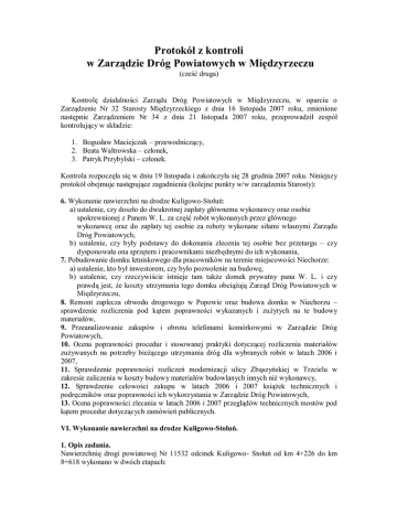 Protokół z kontroli ZDP - Starostwo Powiatowe w Międzyrzeczu