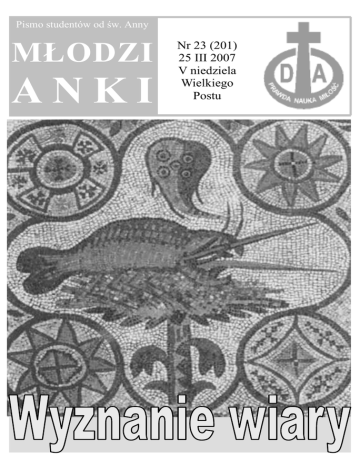 Pismo studentów od św. Anny MŁODZI ANKI Nr 23 (201) 25 III 2007 V niedziela Wielkiego Postu KOMENTARZ DO NIEDZIELNEJ EWANGELII (J 8,1-11) Jezus udał się na Górę Oliwną, ale o brzasku zjawił się znów w świątyni. Wszystek lud schodził się do Niego, a On usiadłszy nauczał. Wówczas uczeni w Piśmie i faryzeusze przyprowadzili do Niego kobietę, którą pochwycono na cudzołóstwie, a postawiwszy ją na środku, powiedzieli do Niego: "Nauczycielu, kobietę tę dopiero pochwycono na cudzołóstwie. W Prawie Mojżesz nakazał nam takie kamienować. A Ty co mówisz?" Mówili to wystawiając Go na próbę, aby mieli o co Go oskarżyć. Lecz Jezus nachyliwszy się pisał palcem po ziemi. A kiedy w dalszym ciągu Go pytali, podniósł się i rzekł do nich: "Kto z was jest bez grzechu, niech pierwszy rzuci na nią kamień". I powtórnie nachyliwszy się, pisał na ziemi. Kiedy to usłyszeli, wszyscy jeden po drugim zaczęli odchodzić, poczynając od starszych. Pozostał tylko Jezus i kobieta, stojąca na środku. Wówczas Jezus podniósłszy się rzekł do niej: "Niewiasto, gdzież oni są? Nikt cię nie potępił?" A ona odrzekła: "Nikt, Panie!" Rzekł do niej Jezus: "I Ja ciebie nie potępiam. Idź, a od tej chwili już nie grzesz". Wydarzenie opisane przez św. Jana to jedna z najbardziej znanych i najczęściej przywoływanych scen ewangelicznych. Sytuacja, w których tak na pierwszy rzut oka trudno znaleźć dobre rozwiązanie. Na to liczyli też faryzeusze, którzy po raz kolejny próbowali wystawić Jezusa na próbę i oskarżyć Go o łamanie praw Starego Testamentu. Całe zajście, z początku tak jednoznaczne i przyciągające uwagę tłumu gapiów gotowych do wymierzenia kary, kończy się samotnym dialogiem dwóch osób: Boga i człowieka. Rozważając wydarzenie z dzisiejszej Ewangelii uderza wprost łatwość, z jaką dokonano osądu zachowań owej nieszczęsnej kobiety. Co więcej, zastanawiająca i wręcz zaskakująca jest gorliwość faryzeuszów i innych ludzi, którzy w imię jasnych, jak się zdawało, reguł Prawa Mojżeszowego pragnęli wcielić się w rolę sprawiedliwych sędziów stojących na straży moralności. Nie wydaje mi się, aby tę dość charakterystyczną postawę dumnych „obrońców zasad” można odnosić wyłącznie do bohaterów całego zdarzenia opisanego w Ewangelii. Także dzisiaj postawa ta jest równie powszechna. Podobnie też jej celem jest przede wszystkim ocena zachowań drugiego człowieka, którego niekiedy z tak dużą łatwością jesteśmy w stanie zaliczyć do tej czy innej kategorii, opierając się wyłącznie na analizie jego postępowania. Schemat poszukiwania „źdźbła w oku bliźniego” stanowi smutną lecz niestety bardzo widoczną rzeczywistość codziennych, nawet drobnych relacji międzyludzkich. Brakuje w tym wszystkim prostej refleksji i świadomości faktu, o którym przypomina nam dzisiaj Jezus. Oto każdy z nas na swój własny sposób jest grzesznikiem i każdy musi przede wszystkim podejmować trud walki o swoje osobiste nawrócenie. Czy rzeczywiście możemy i powinniśmy pretendować do roli 2 owych „sprawiedliwych sędziów”? "I Ja ciebie nie potępiam”. Słysząc te słowa po raz kolejny stajemy wobec niezgłębionej tajemnicy Bożego Miłosierdzia. Przychodzi w tym miejscu na myśl fragment Ewangelii z ostatniej niedzieli, w którym rozważaliśmy postawę miłosiernego ojca, czekającego z utęsknieniem na powrót swego zagubionego syna. Postawa cierpliwego wyczekiwania i przebaczenia przerasta często nasze własne możliwości. Zamiast tego skłonni jesteśmy potępiać nie tylko drugiego człowieka, ale także i samych siebie, zwracając przede wszystkim uwagę na swoje słabości. Chrystus mając pełną wiedzę o naturze każdego człowieka, mimo to staje w jego obronie. Brak potępienia nie oznacza pobłażliwości, ale jest jasną wskazówką i wyraźnym zaproszeniem do nawrócenia się bez względu na okoliczności. Po raz kolejny przekonujemy się, że nie ma takiej sytuacji i takiego upadku, z którego Bóg nie chciałby nas wyprowadzić. I choć często wydaje nam się, że dystans dzielący nas od Niego jest już nie do nadrobienia, On wciąż czeka, ale swoim Miłosierdziu nie chce nam niczego narzucać. To od każdego z nas oczekuje jasnej i zdecydowanej deklaracji i wyraźnej woli nawrócenia. I choć po raz kolejny, mimo szeregu postanowień poprawy, wracamy do punktu wyjścia i ponownie doświadczamy tych samych grzechów, ponownie też mamy szansę powrotu do Jezusa, który i tym razem nas nie potępi. Utwierdzając się dzisiaj w tej prawdzie warto nieustannie podejmować wysiłek poprawy nawet tych drobnych, powtarzających się ciągle słabości. Także dzisiaj konieczna jest refleksja towarzysząca synowi marnotrawnemu, który „wybrał się […] i poszedł do swojego ojca”. Nie ma na co czekać. Marcin Stębelski Redditio Symboli w kościele akademickim Zapewne większość osób przechodzących ostatnio obok Kościoła Św. Anny zauważyła plakat informujący o Redditio Symboli, czyli publicznym uroczystym wyznaniu wiary. To szczególne wydarzenie jest obchodzone po raz pierwszy w długiej historii duszpasterstwa akademickiego. Każdej niedzieli wierni w czasie mszy świętej powtarzają „Wierzę w Boga”, a w czasie chrztu cała wspólnota wierzących, obecnych w kościele, wyznaje wiarę. W przypadku Redditio chodzi o osobiste, indywidualne wyznanie wiary w oparciu o historię własnego życia zakończone wypowiedzeniem Credo. Obrzęd ten ma swoje źródło w Kościele pierwszych wieków i jest ściśle powiązany z przygotowaniem dorosłych do sakramentu chrztu. Okres ten był poświęcony na wprowadzenie katechumenów (osób pragnących przyjąć chrzest), w tajemnice wiary chrześcijańskiej. Stopniowe przygotowywanie kandydatów podzielone na etapy miało służyć głębokiej przemianie serca człowieka i potwierdzeniu przez prowadzących (katechist