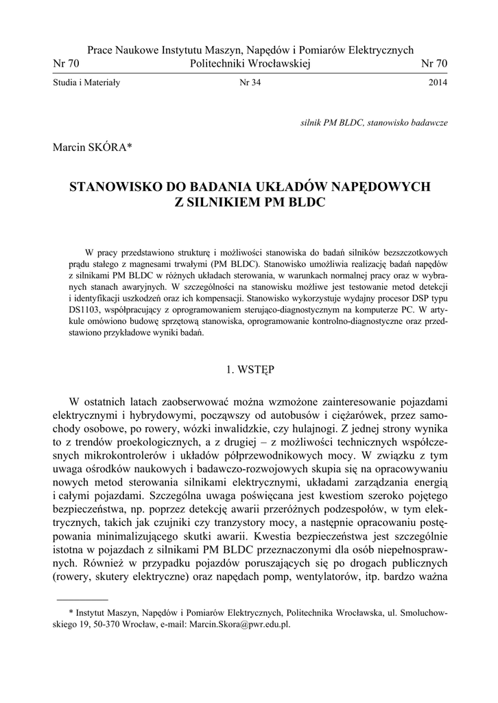 stanowisko do badania układów napędowych z silnikiem pm bldc
