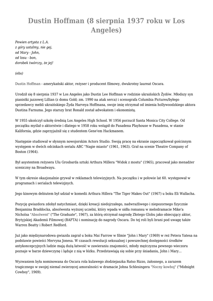 Dustin Hoffman (8 sierpnia 1937 roku w Los