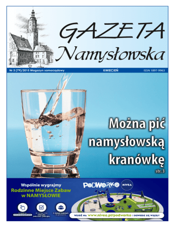 Namysłowska Nr 3 (79)/2015 Magazyn samorządowy KWIECIEŃ Można pić namysłowską kranówkę str. 3 Wspólnie wygrajmy Rodzinne Miejsce Zabaw w NAMYSŁOWIE jeden mail = jeden głos 2 KWIECIEŃ 2015 RAZEM WYGRAJMY PLAC ZABAW W NAMYSŁOWIE SzanowniCzytelnicy, Ostatniorozmawiałemzpewnąkobietą,któraskarżyła się, że została posądzona o dziwactwo sprzątając potłuczone butelki w miejscu, w którym zazwyczaj spaceruje wraz ze swoim psem. Posądzona została przez mieszkańców pobliskich gospodarstw. Marzy mi się taka chwila,kiedytegotypuczynywNamysłowieniewywołają uśmiechu politowania, a staną się przykładem, za którym pójdąinni. Od miesiąca bierzemy udział w zabawie polegającej na głosowaniuinternetowym,dziękiktó remumoż emywygrać plac zabaw dla dzieci, zlokalizowany przy ul. Kolejowej w Namysłowie, tuż obok "Orlikó w": piłkarskiego i lodowiska. Bardzoatrakcyjnyplaczabaw,ufundowanyprzezorganizatora konkursu- irmęNivea.Myś lę,ż etocoś więcejniż zabawa.Jestto sprawdzian dla naszej miejsko-gminnej wspó lnoty. Wreszcie, bezoglądaniasięnawszelkich"Onych",moż emywziąć sprawę wewłasneręce.Wspó lniemoż emywywalczyć miejscezabawi nauki dla najmłodszych mieszkań có w Namysłowa. Co trzeba zrobić ?Toproste: ź Wejś ćnastronękonkursową(www.nivea.pl/podworko) ź Odnaleź ć Namysłó w (w lokalizacji wybieramy najpierw "wojewó dztwo opolskie", potem "powiat namysłowski" i poniż ej"Namysłó w") ź Wpisać swó jadrese-mail(Uwaga!Głosó wmoż naoddać tyle ilesięposiadaadresó wmailowych) ź Potwierdzić głospoprzezmaila,któ ryprzyjdziepodwskazany wcześ niej adres (być moż e z opó ź nieniem, moż e się takż e pojawić wró ż nychzakładkachtypuspam,społecznoś ci). ź Jedenadrese-mail=jedengłosdziennie. Wchwili,kiedypiszętesłowaNamysłó wznajdujesięna81. miejscu rankingu (na 1117 zgłoszonych do konkursu lokalizacji). Nieodległa Dziadowa Kłoda, w któ rej mieszka kilkanaś cie razy mniej mieszkań có w, niż w Namysłowie, wyprzedza nas o kilkadziesiąt miejsc i jeszcze niedawno plasowała się w ś cisłej czołó wce. Dodam, ż e w poprzednich edycjach Dziadowa Kłoda wywalczyła już dwa place zabaw Nivea.Maduż eszansenatrzeci. CzyNamysłó wmajeszczeszanse?Pewnie!Nagrodęotrzyma40 pierwszych lokalizacji, tylko, ż e w dwó ch turach. Na koniec kwietniawygrapierwszych20lokalizacji.Wmaju,okolejne20 p l a c ó w w a l c z y ć b ę d ą p o z o s t a ł e m i e j s c o w o ś c i . Najprawdopodobniej w drugiej turze liczyć się będą głosy uzyskane w kwietniu, więc jeś li nawet teraz się nie uda, to walczymyojaknajlepsząpozycjęstartowąwmaju.Wierzę,ż esię uda. Wierzę w namysłowian, ż e wspó lnie moż emy zadbać o swojemiastoigminę.Dodzieła! Już dziś dziękuję wszystkim, któ rzy przyczynili się do rozpowszechnienia idei głosowania na namysłowskie podwó rkoNivea.Dziękujęró wnież irmom:Drukarni„Soldruk” oraz Agencji Reklamowej – Drukarni Wielkoformatowej „Magenta”zapomocwpromocjikonkursu. SławomirStramski red.naczelny SESJA PEŁNA PODZIĘKOWAŃ I GRATULACJI 2 kwietnia w dużej sali narad Urzędu Miejskiego w Namysłowie odbyła się VI sesja Rady Miejskiej w Namysłowieob itującawpodziękowaniaigratulacje. Przedprzystąpieniemdoporządkuobrad,burmistrzJulian Kruszyń ski wraz z obecnym na sesji wojewodą opolskim Ryszardem Wilczyń skim podziękowali bowiem ustępującym sołtysom i zarządom osiedli oraz złoż yli gratulacje sołtysom ponowniewybranyminowymwgminieNamysłó woraznowym przewodniczącymzarządó wosiedliwNamysłowie. Z okazji Dnia Św. Floriana, składam najserdeczniejsze życzenie wszystkim Druhnom i Druhom jednostek Ochotniczych Straży Pożarnych z terenu gminy Namysłów. Dziękuję Państwu za bezinteresowną, pełną zaangażowania, ale i tez trudu i ryzyka pomoc niesioną drugiemu człowiekowi oraz chęć służenia naszej małej ojczyźnie. Życzę wszystkiego najlepszego, nieprzemijającego zdrowia i kondycji, samych pomyślnie zakończonych akcji, satysfakcji z wypełnianej służby oraz powodzenia w życiu osobistym. Burmistrz Namysłowa Julian Kruszyński 3 KWIECIEŃ 2015 Podziękowania otrzymali ustępujący sołtysi: Zbigniew Ogonowski (Kowalowice), Ewa Mleczko (Ziemiełowice), Anna Lewkowicz (Barzyna), Beata Rogowska (Mikowice), Gabriel Wdowiak (Smarchowice Wielkie), Jacek Pasztetnik (Niwki), JacekPłaczek(Łączany),JanNawrot(NowyFolwark),Ryszard Raduchowski (Ligotka), Stanisław Zmigrodzki (Smogorzó w) i Teresa Kamiń ska (Objazda) oraz przewodniczący zarządó w osiedli:EdwardSnież ek(OsiedlenrI),RomanSurdyk(Osiedlenr III), Krzysztof Dzidowski (Osiedle nr IV), Dariusz Pilarski (OsiedlenrV)iJadwigaJaroszewska(OsiedlenrVI). Gratulacje otrzymali sołtysi nowej kadencji: Boż ena Białek (Baldwinowice), Izabela Raczyń ska (Brzezinka), Anna Oleksy (Bukowa Sląska), Danuta Łukasiak (Jastrzębie), Ewa Wolska (Kamienna), Władysław Janikowski (Brzozowiec), Tomasz Łuczak (Głuszyna), Grzegorz Palamarz (Igłowice), Jan Bereziń ski (Jó ze kó w), Andrzej Dziedzic (Krasowice), Tomasz Rudzki (Ligota Książ ęca), Adam Maziak (Michalice), Zbigniew B a n a s i a k ( M i n ko w s k i e ) , S z c z e p a n J a n c z u ra ( N o w e S m a r c h o w i c e ) , D a m i a n K ł o b u t o w s k i ( P a w ł o w i c e Namysłowskie), Kazimierz Pękał (Przeczó w), Władysław Dzwoniarek (Rychnó w), Andrzej Sarnat (Smarchowice Małe), Aleksander Bednarek (Woskowice Małe), Czesław Rdzanek (Zaba),MonikaŁyduch(Barzyna),OlgaJuszko(Ligotka),Halina Traczewska (Objazda), Wioleta Grzelak (Smogorzó w), Piotr Kocań da(Ziemiełowice),KazimierzPaczkowski(Smarchowice Wielkie), Łukasz Wró blewski (Nowy Folwark), Jan Pasztetnik (Niwki),DariuszLitwin(Mikowice),JanuszKubicki(Łączany)i Damian Cyc (Kowalowice) oraz przewodniczący zarządó w osiedli: Aleksandra Kaczmarek (Osiedle nr I), Lucyna Medyk (Osiedle nr II), Marcin Kompała (Osiedle nr III), Włodzimierz Puto