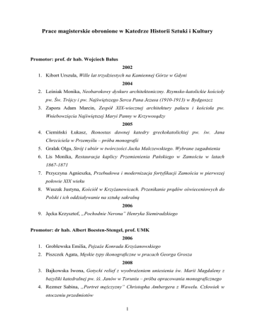 magisterskie - Katedra Historii Sztuki i Kultury UMK