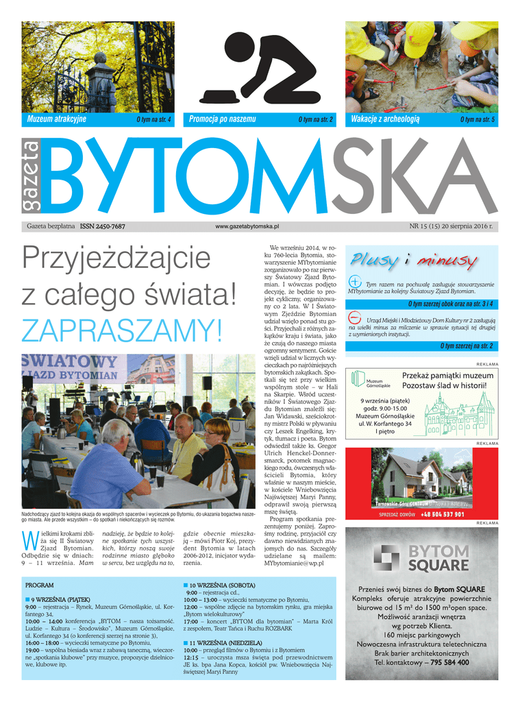 Muzeum atrakcyjne O tym na str. 4 Promocja po naszemu gazetabezpłatna issn2450-7687 www.gazetabytomska.pl Przyjeżdżajcie z całego świata! ZaPrasZamy! Nadchodzącyzjazdtokolejnaokazjado wspólnychspacerówi wycieczekpo Bytomiu,do ukazaniabogactwanaszegomiasta.Aleprzedewszystkim–do spotkańi niekończącychsięrozmów. W ielkimikrokamizbliża się ii światowy zjazd Byt om ian. odb ęd zie się w dniach: 9 – 11 wrześ nia. Mam nadzieję,żebędzietokolejne spotkanie tych wszystkich, któr zy nos zą swoje rod zinn e mias to głęb ok o w sercu,bezwzględuna to, Program ■ 9września(Piątek) 9:00 – rejestracja – rynek, muzeum górnośląskie, ul. korfantego 34, 10:00 – 14:00 konferencja „BYtom – nasza tożsamość. Ludzie – kultura – środowisko”, muzeum górnośląskie, ul.korfantego 34(o konferencjiszerzejna stronie 3), 16:00–18:00 –wycieczkitematycznepo Bytomiu, 19:00–wspólnabiesiadawrazz zabawątaneczną,wieczorne„spotkaniaklubowe”przy muzyce,propozycjedzielnicowe,kluboweitp. O tym na str. 2 gdzie obecn ie mieszk ają–mówiPiotrkoj,prezydent Byt om ia w lat ach 2006-2012,inicjatorwydarzenia. wewrześniu 2014,w roku 760-lecia Bytomia, stowarzyszeniemYbytomianie zorganizowałopo razpierwszy światowy zjazd Bytomian. i wówczas podjęto decyzję, że będzie to projekt cykliczny, organizowany co 2 lata. w i światowym zjeźd zie Byt om ian udziałwzięłoponadstugości.Przyjechaliz różnychzakątków kraju i świata, jako żeczujądo naszegomiasta ogromnysentyment.goście wzięliudziałw licznychwycieczkachpo najróżniejszych bytomskichzakątkach.spotkali się też przy wielkim wspólnym stole – w Hali na skarpie. wśród uczestników i światowego zjazdu Bytomian znaleźli się: Janwidawski,sześciokrotnymistrzPolskiw pływaniu czy Leszek engelking, krytyk,tłumaczi poeta.Bytom odwiedził także ks. gregor Ulrich Henckel- donn ersmarck, potomek magnackiegorodu,ówczesnychwłaścic ieli Byt om ia, któr y właśniew naszymmieście, w kościele wniebowzięcia najświętszej maryi Panny, odp raw ił swoją pierws zą mszęświętą. Program spotkania prezentujemy poniżej. zaprośmyrodzinę,przyjaciółczy dawno niewidzianych znajomych do nas. szczegóły udzielan e są mailem: [email protected] ■ 10września(soBota) 9:00 –rejestracjacd., 10:00– 13:00 –wycieczkitematycznepo Bytomiu, 12:00– wspólne zdjęcie na bytomskim rynku, gra miejska „Bytomwielokulturowy” 17:00 – koncert „BYtom dla bytomian” – marta król z zespołem,teatrtańcai ruchurozBark ■ 11września(niedzieLa) 10:00 –przeglądfilmówo Bytomiui z Bytomiem 12:15 – uroc zys ta msza święt a pod przew odn ict wem Je ks. bpa Jana kopca, kościół pw. wniebowzięcia najświętszejmaryiPanny Wakacje z archeologią O tym na str. 5 nr15(15)20sierpnia2016r. Plusy i minusy Tym razem na pochwałę zasługuje stowarzyszenie MYbytomianiezakolejnyŚwiatowyZjazdBytomian. O tym szerzej obok oraz na str. 3 i 4 UrządMiejskiiMłodzieżowyDomKulturynr2zasługują na wielki minus za milczenie w sprawie sytuacji tej drugiej zwymienionychinstytucji. O tym szerzej na str. 2 REKLAMA REKLAMA REKLAMA 2 ■ (s o bo ta , 20 si erp ni a 2 01 6 ) AKT UA LNOŚ CI ga ze ta B yt om s ka Co się dZieje w Karbiu? D opieropisaliśmyo zamknięciuw tejdzielnicyjejjednegoz charakterystycznych miejsc–restauracjimcdonald's, a teraz znów musimy wrócić do sprawy.zbliżasięrokszkolny,a wychowankowiemłodzieżowegodomukulturynr 2nie będą mogli korzystać z zajęć w tej placówce, a ci bardziej zdeterminowanizostaną„poroz- rzucani”w okolicznychplacówkach oświatowych oraz siedzibie miechowickiej spółdzielni. Powodemtejsytuacjisąoczywiście szkody górnicze, a tak naprawdętolerancjadlarabunkowejgospodarkizłożemzestrony władzmiasta.Jakbowieminaczejwytłumaczyćfakt,że,mimo iżw okolicyw 2011rokudoszło do katastrofy budowlanej, spo- wodowanejdziałalnościąkopalni,w wynikuktórejdachnad głowąstraciło 600osób,mieszkańcykarbiaciągleniemogączuć siępewnie? Ówczesny prezydent miasta wyciągnął wnioski z tych dramatycznych doświadczeń, wywalczył odszkodowanie w wysokości prawie 25 mln zł. ta zdecydowana postawaniemo- MłodzieżowyDomKultur ynr 2mieścisięw budynkupowstałymw 1953r.WówczastodziałałtuOgródJordanowski. PromoCja po naszemu rys. Michał Ogiński, więcej na: facebook.com/OginskiMichal P rzez media przetacza się informacja o prowadzonejniegdzieindziejtylko właśniew Bytomiuod 19sierpniado końcawrześniakampanii„niedawajpieniędzyna ulicach. Pomagaj roztropnie”. Żebractwo to nie rozwiązanie – nawołują organizatorzy akcji. zapowiadają, że wystąpiąlokalniartyści,będąprelekcjena tematchorobyalkoholowej, a także prezentacje różnychformprofesjonalnego wspierania osób potrzebujących.zakupionobanery,ulotki i plakatyz apelem,byniedawaćpieniędzyosobomżebrzącym. mają być przekazywane informacje–wykazorganizacji pozarządowych, które pomagają chorym na alkoholizm. Pracująw nichterapeuciuzależnień,streetworkerzy. na raziejednakwidzimyinformacje o samej akcji, okraszone niepięknymi zdjęciami naszegomiasta.zdjęciami,któryminiechcielibyśmysięchwa- głaspodobaćsięprzedsiębiorcy górniczemuanigórniczymzwiązkowcom, efektem czego było odwołanieprezydentakojaw referendum. obecnyprezydentmiastadamian Bartyla, popierany przez związkowców, nie walczy z rabunkową gospodarką, nie protestuje przeciwko tąpnięciom, o którychmożna usłyszećwśród znajomychlubprzeczytaćna forachinternetowych(o ilesięich nie doświadczy osobiście), bo na oficjalneinformacjezestrony władzmiastaoczywiścieniema coliczyć.widzimytylkoznikająceobiekty,a na stroniemłodzieżowegodomukulturynr 2pojawia się lakoniczna informacja (pisowniaoryginalna): Szanowni Rodzice i Wychowankowie Uprzejmie informuję, że w roku szkolnym 2016/2017 w MDK 2będzieremontzwiązanyz usuwaniemszkódgórniczych (pionowaniebudynku–tzw.Rektyfikacja). W związku z p