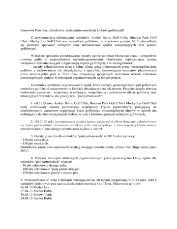 Szanowni Państwo, członkowie zachodniopomorskich klubów golfowych!