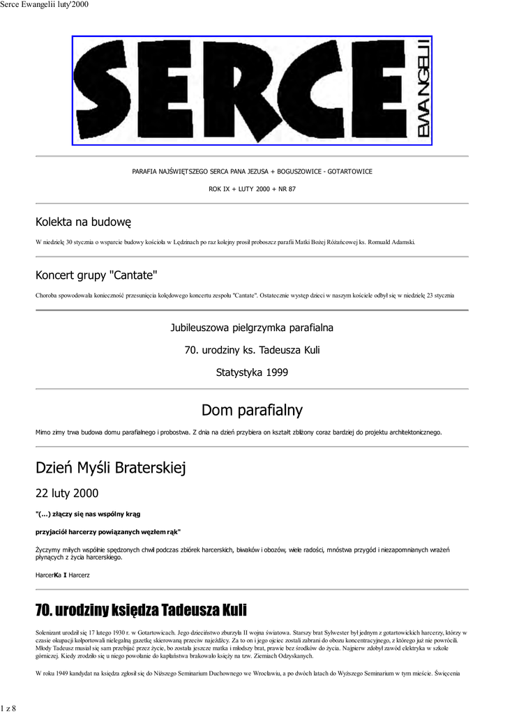 Serce Ewangelii luty`2000 - Parafia Najświętszego Serca Pana Jezusa