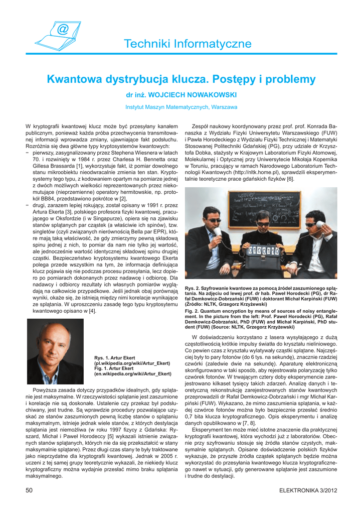 Kwantowa dystrybucja klucza. Postępy i problemy