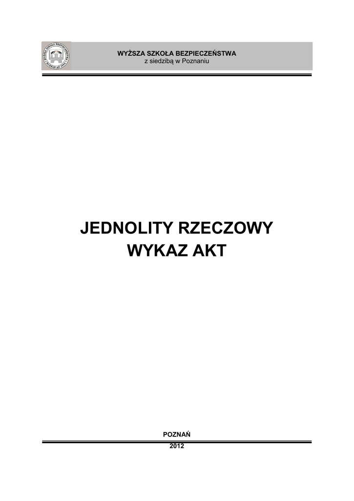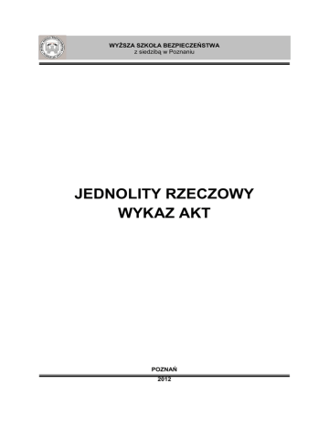 jednolity rzeczowy wykaz akt - Wyższa Szkoła Bezpieczeństwa