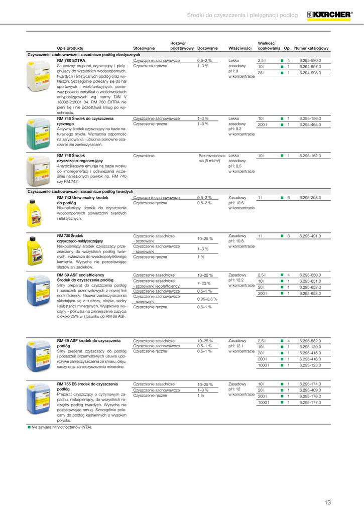 13 Środki do czyszczenia i pielęgnacji podłóg