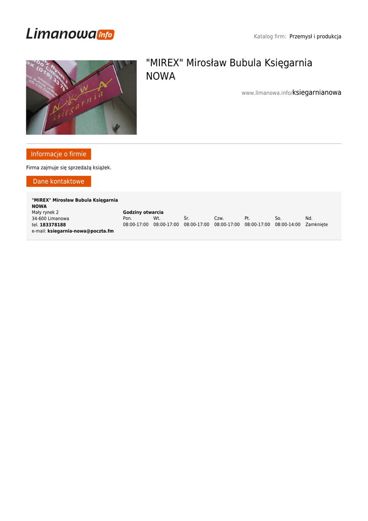 "MIREX" Mirosław Bubula Księgarnia NOWA