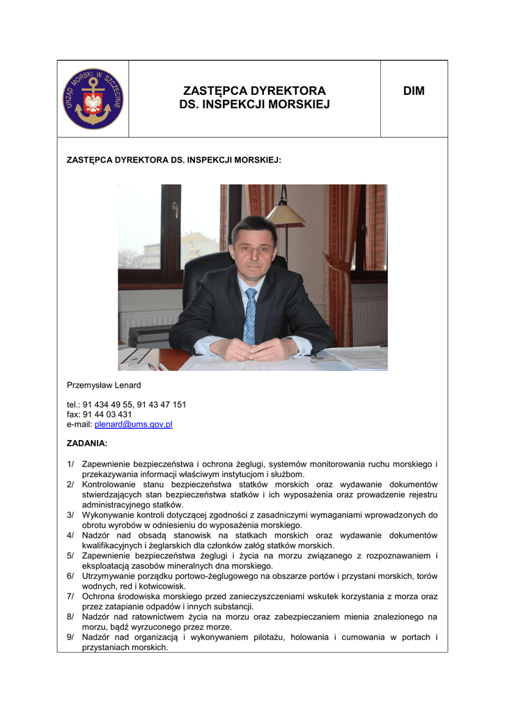 ZASTĘPCA DYREKTORA DS. INSPEKCJI MORSKIEJ DIM