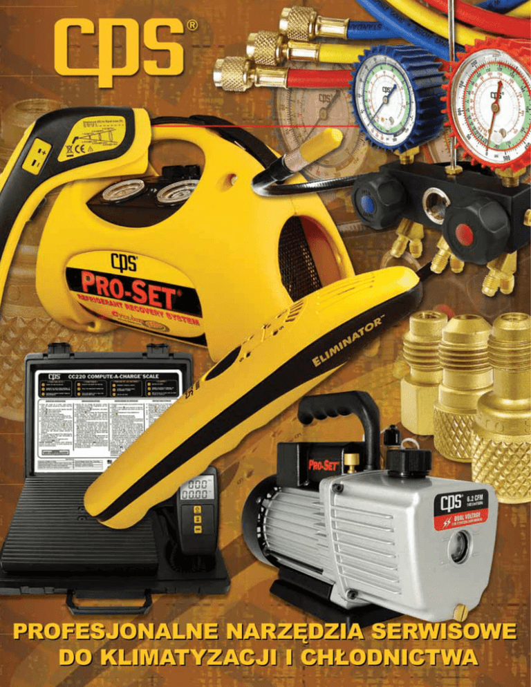 CPS jest światowym liderem w projektowaniu i produkcji narzędzi i urządzeń pomiarowych stosowanych w przemyśle samochodowym oraz chłodnictwie i klimatyzacji. Założona w 1975 roku firma, rozpoczęła swoją działalność z jednym pracownikiem i jednym produktem. Obecnie zatrudnia ponad 200 pracowników i wytwarza 1200 produktów w pięciu filiach strategicznie rozmieszczonych na całym świecie. Globalna lokalizacja zapewnia klientom CPS nieograniczone możliwości korzystania z bogatej oferty produktowej. Swój sukces CPS zawdzięcza filozofii, która zakłada, że każdy klient powinien dostać to, co branża ma najlepszego do zaoferowania: profesjonalny serwis i najlepsze produkty najwyższej jakości. CPS jako wyłączny właściciel zakładów produkcyjnych, wyposażonych w najnowocześniejsze mechaniczne i elektroniczne urządzenia, aktywnie rozwija i nieustannie doskonali swoje produkty. Ten wyjątkowy status w dzisiejszej, podlegającej gwałtownym zmianom strukturze własności w sferze produkcji, zapewnia CPS zdecydowaną przewagę nad konkurencją przy opracowywaniu nowych, innowacyjnych produktów, spełniających wymagania stawiane przez klientów. Kiedy jeden z produktów firmy staje się narzędziem godnym polecenia przez używającego go serwisanta innym serwisantom, to cel jaki stawia przed sobą firma CPS został osiągnięty. A poza tym, my żyjemy z produkowania narzędzi, na których ty opierasz swoje życie! Lokalizacja KANADA EUROPA CHINY SIEDZIBA GŁÓWNA AZJA AUSTRALIA SPIS TREŚCI ELEKTRONICZNE WYKRYWACZE NIESZCZELNOŚCI 1-3 URZĄDZENIA DO WYKRYWANIA NIESZCZELNOŚCI ZA POMOCĄ PROMIENIOWANIA UV 4-6 WAGI ELEKTRYCZNE/ STACJE DO NAPEŁNIANIA 7-9 MIERNIKI ELEKTRYCZNE 10 - 11 PRZYRZĄDY DO POMIARU TEMPERATURY 12 - 14 WAKUOMETRY I SPECJALNE PRZYRZĄDY 15 - 16 POMPY PRÓŻNIOWE PRO-SET® 17- 18 PRZENOŚNE STACJE DO ODZYSKU / SPRZĘT DO RECYKLINGU 19 - 22 SPIS TREŚCI OPRAWY MANOMETRÓW I MANOMETRY 23 - 30 ZESTAWY DO KONTROLI CIŚNIENIA GAZU 31 WĘŻE DO NAPEŁNIANIA / PRÓŻNIOWANIA 32 - 34 ZŁĄCZKI DO WĘŻY, ZAWORY KULOWE, ZAWORY ZWROTNE 35 - 36 PRZYRZĄDY DO WYKRĘCANIA WENTYLI 37 ZŁĄCZKI 38 NARZĘDZIA DO RUR 39 - 42 NARZĘDZIA SPECJALNE 43 - 45 SPIS TREŚCI KLIMATYZACJA SAMOCHODOWA OPRAWY MANOMETRÓW I MANOMETRY 46 - 47 WĘŻE DO NAPEŁNIANIA 48 SZYBKOZŁĄCZKI DO R134A, ZAWORY KULOWE, REDUKCJE 49 NARZĘDZIA SPECJALNE 50 - 52 URZĄDZENIA DO WYKRYWANIA NIESZCZELNOŚCI ZA POMOCĄ PROMIENIOWANIA UV 53 - 55 MIERNIKI ELEKTRYCZNE MOBILNE STACJE DO OBSŁUGI KLIMATYZACJI SAMOCHODOWEJ 56 57 - 61 ELEKTRONICZNE WYKRYWANIE NIESZCZELNOŚCI ELIMINATOR™ LS3000B – Elektroniczny wykrywacz nieszczelności W pełni zautomatyzowany elektroniczny wykrywacz nieszczelności do wszystkich gazów i mieszanin typu HFC, HCFC, CFC, SF6. Wyjątkowe oprogramowanie POWERSHIFT automatycznie monitoruje, kontroluje i reguluje wszystkie najważniejsze ustawienia instrumentu, zapewniając jak najlepsze wyniki w wyszukiwaniu nieszczelności w każdym środowisku. Dwa oddzielne, wizualne wyświetlacze LED umożliwiają użytkownikowi ustalenie dokładnej lokalizacji źródła wycieku oraz w przybliżeniu jego wielkość. LS3000B A/C&RZastosowanie Application A/C&R Dioda z zimną katodą: Opatentowana konstrukcja, pozwala na szybkie i dokładne wykrycie przecieku czynnika przy zachowaniu maksymalnej czułości przez cały okres eksploatacji czujnika. Duża odporność na zanieczyszczenia otoczenia w tym silne zanieczyszczenia jak olej, przecieki, wycofywane płyny, chłodziwa, płyny czyszczące, itp. W pełni automatyczny wybór, wyższa niż 0,10 oz/rok (3 g/rok) dla HFC CZUŁOŚĆ: Alarm akustyczny: do wyboru użytkownika 2 opcje alarmowe (WYSOKIE i NISKIE natężenie) WSKAZANIE WYCIEKU: Ośmiostopniowa podziałka tachometryczna do lokalizacji nieszczelności WSKAŹNIK TACHOMETRYCZNY: Wyświetlacz z 7 diodami ułożonymi na wzór biegów w samochodzie pokazuje bieżący zakres czułości WYŚWIETLACZ WIZUALNY GEARSHIFT: urządzenia i odpowiadającą mu wielkość wycieku 14” / 35,6 cm długość, 0,25” / 6,4 mm średnica ELASTYCZNA SONDA: od 0° do 140O°F / -18° do 60O°C TEMPERATURA PRACY: 75 godzin życia baterii, 3 alkaliczne baterie, wielkość R14 ZASILANIE: Automatyczne wyłączenie następuje po 10 minutach bezczynności urządzenia Specjalny sygnał przebiegający z lewej strony na prawą podziałki tachometrycznej wskazuje na zużycie baterii WSKAŹNIK ZUŻYCIA BATERII: CIĘŻAR: 1 lb 2 oz / 500g GWARANCJA: 2 lata z wyłączeniem czujnika i baterii TYP CZUJNIKA: OPROGRAMOWANIE POWERSHIFT Automatycznie reguluje czułość, eliminując pracę opartą na domysłach i maksymalizując efektywność urządzenia Zastosowanie - samochody NAJNOWOCZEŚNIEJSZA TECHNOLOGIA WYKONANIA CZUJNIKA DIODA Z ZIMNĄ KATODĄ Dostarcza szybkie informacje o wyciekach oraz utrzymuje maksymalną czułość przez cały okres eksploatacji czujnika WYSOKA ODPORNOŚĆ NA ZANIECZYSZCZENIA OTOCZENIA Również na silne zanieczyszczenia jak olej, różnego rodzaju płyny, chłodziwa, płyny czyszczące, itp. GŁOŚNIK EMITUJĄCY ALARM Dostarcza czyste, intensywne tony dźwięku OŚMIOSTOPNIOWA PODZIAŁKA TACHOMETRYCZNA ZE ŚWIECĄCYMI DIODAMI Umożliwia użytkownikowi precyzyjną lokalizację nieszczelności UNIKALNY WYŚWIETLACZ „GEARSHIFT” DO OKREŚLANIA WIELKOŚCI WYCIEKU Pozwala użytkownikowi określić w przybliżeniu wielkość wycieku N (Neutral) – urządzenie gotowe do pracy Wielkość wycieku: mały, średni, duży PROSTA OBSŁUGA TYLKO JEDNYM PRZYCISKIEM Pojedyńcze wciśnięcie uruchamia urządzenie. Ponownie wciśnięcie resetuje urządzenie. Dwukrotne wciśnięcie zmienia czułość. Wciśnięcie i przytrzymanie powoduje wyłączenie urządzenia. F-Gas Compliant (EN 14624:2005) 1 ELEKTRONICZNE WYKRYWANIE NIESZCZELNOŚCI LEAK SEEKER® – LS780B / LS790B Elektroniczne wykrywacze nieszczelności LS790B Elektroniczny wykrywacz nieszczelności o wysokiej czułości łączący w sobie najba