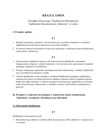 regulamin - Spółdzielnia Mieszkaniowa „Dąbrowa”