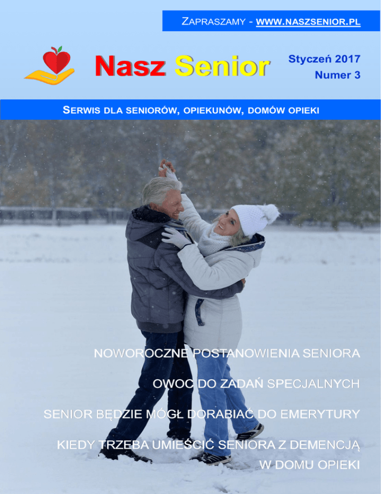 ZAPRASZAMY - WWW.NASZSENIOR.PL Nasz Senior Styczeń 2017 Numer 3 SERWIS DLA SENIORÓW, OPIEKUNÓW, DOMÓW OPIEKI NOWOROCZNE POSTANOWIENIA SENIORA OWOC DO ZADAŃ SPECJALNYCH SENIOR BĘDZIE MÓGŁ DORABIAĆ DO EMERYTURY KIEDY TRZEBA UMIEŚCIĆ SENIORA Z DEMENCJĄ W DOMU OPIEKI Nasz Senior Nasz Senior SPIS TREŚCI 1 Zapraszamy - www.naszsenior.pl 2. LIST OD REDAKCJI 3. NOWY WYKAZ REFUNDOWANYCH LEKÓW — Agata Mościcka 4. ZATRUCIE POWIETRZA W WARSZAWIE — Joanna Sadura 6. COŚ JEDNAK BĘDZIE TAŃSZE, PONIEWAŻ NASTĄPI OBNIŻKA CEN GAZU — Andrzej Kostrzewa 7. KIEDY TRZEBA UMIEŚCIĆ SENIORA Z DEMENCJĄ W DOMU OPIEKI — Maria Starowiejska 9. JAK POWINNA WYGLĄDAĆ POMOC DLA OSÓB STARSZYCH —Maria Starowiejska 12. NOWOROCZNE POSTANOWIENIA SENIORA — Agata Cukrowska 13. W KOGO UDERZĄ SKUTKI ZAKAZU REKLAMOWANIA LEKÓW — Maksymilian Zadroga 15. JAK ZNIECHĘCIĆ DO WCZEŚNIEJSZEJ EMERYTURY — Tymon Zawada 16. TELEOPIEKA — Kazimierz Modruga 17. SENIOR BĘDZIE MÓGŁ DORABIAĆ DO EMERYTURY — Tymon Zawada 18. WSKAŹNIK AKTYWNEGO STARZENIA – AAI – POLSKA NA PRZEDOSTATNIM MIEJSCU W UE — Anna Redosz 20. MAGIA ZIÓŁ — Joanna Zadrowska 21. SAŁATKA Z WINOGRONAMI — Jadwiga Szatkowska 22. ŁATWY DO WYKONANIA OBIAD — Joanna Zadrowska 23. GDYNIA - MIASTO PRZYJAZNE STARZENIU — Stanisław Trojanowski 25. PROJEKT LEGALNA NIANIA JEST SZANSĄ ZATRUDNIENIA DLA SENIORÓW — Tymon Zawada 26. PREZYDENT ANDRZEJ DUDA ZAAKCEPTOWAŁ USTAWĘ OBNIŻAJĄCĄ WIEK EMERYTALNY — Tymon Zawada 28. BAZYLIA JEST PROZDROWOTNA — Jadwiga Szatkowska 29. OWOC DO ZADAŃ SPECJALNYCH — Joanna Zadrowska Nasz Senior 2 LIST OD REDAKCJI Drogi Czytelniku! To już trzeci numer drukowanej wersji magazynu „Nasz Senior” i zarazem pierwszy w nowym, 2017 roku. Z tej okazji pragniemy życzyć wszystkim Seniorom oraz ich najbliższym dużo zdrowia, wytrwałości w spełnianiu zamierzonych planów na ten rok, a sobie życzymy jak największego i wiernego grona czytelników. W życiu Seniorów możesz uczestniczyć razem z portalem internetowym - www.naszsenior.pl. Jako nasze wspólne dobro, służy on nam do obiektywnego dostrzegania realnych problemów, aktywizowania działań, pomaganiu w naszym rozwoju duchowym i intelektualnym. Anna Redosz Redaktor naczelny Z przyjemnością odpowiem na Państwa pytania [email protected] W tym wydaniu szczególnie polecamy artykuł Kazimierze Modrugi na temat Teleopieki, czyli nowoczesnego systemu, który daje opiekunom narzędzie sprawnego reagowania na sytuacje alarmowe, które mogą się przydarzyć każdemu Seniorowi. „Nasz Senior” jest czasopismem bezpłatnym i jest udostępniany na portalu internetowym – www.naszsenior.pl - w formie pliku PDF. Plik w tym formacie należy otworzyć przy pomocy powszechnie dostępnych programów. Dzięki temu możesz samodzielnie wydrukować swój egzemplarz. Redakcja „Nasz Senior” wyraża zgodę na bezpłatny wydruk udostępnianych na portalu internetowym - www.naszsenior.pl wydań czasopisma w niezmienionej formie, w dowolnej ilości i prosimy o udostępnianie ich wśród swoich przyjaciół i znajomych. Ponadto pragniemy Cię poinformować, że portal www.naszsenior.pl nadal będzie zamieszczał aktualne informacje, ciekawe artykuły i wyraziste felietony. Drogi Czytelniku, „Nasz Senior” od początku tworzymy z zaangażowaniem i pasją, którą chcemy się z Tobą dzielić. Zachęcamy Ciebie oraz Twoich Najbliższych do częstego odwiedzania portalu www.naszsenior.pl oraz sięgania po wersję drukowaną. Nasz Senior Wydawca: Bochacz.com Sp. z o.o. Adres redakcji: ul. Modlińska 190 03-119 Warszawa telefon +48 22 510 36 35 fax +48 22 510 36 36 e-mail [email protected] Nasz Senior Redaktor naczelny: Anna Redosz Zespół: Agata Mościcka, Jadwiga Szatkowska, Joanna Zadrowska, Maria Starowiejska, Joanna Sadura, Agata Cukrowska, Tymon Zawada, Stanisław Trojanowski, Kazimierz Modruga, Maksymilian Zadroga, Andrzej Kostrzewa ZDROWIE 3 Do najnowszego obwieszczenia dodano 84 leki, w tym 60 do listy aptecznej, 11 do katalogu chemioterapii i 13 w ramach programów lekowych. 173 produkty otrzymały wskazanie off-label, czyli poza zarejestrowa- Nowy wykaz refundowanych leków Z dniem 1-ego stycznia Zmiany w programach lekowych Obniżono ceny urzędowe zbytu aż 110 pozycji, w tym 79 w ramach listy aptecznej, zaś ceny 9 leków podniesiono. obowiązuje nowy wykaz dotyczą leczenia: Dopłaty będą konieczne w przy- refundowanych leków. padku 506 produktów. mielofibrozy, Lista zawiera między innymi 84 aktywnej postaci spondyloartropatii osiowej, nowe medykamenty, które spastyczności kończyny dolnej niezbędne są w leczeniu po udarze mózgu, idiopatycznego włóknienia płuc. wrzodziejącego zapalenia jelita Co dwa miesiące wykonywana jest aktualizacja dzięki nym wskazaniem. czemu listy refundacyjnej, wprowadzane są na nią nowe skuteczne produkty grubego, choroby Leśniewskiego-Crohna, stwardnienia rozsianego, wysiękowej postaci zwyrodnienia plamki, związanego z wiekiem. Do 375 medykamentów dopłaty wzrosną. Ceny detaliczne brutto leków zostaną obniżone w przypadku 475 pozycji, zaś podniesione dla 310. W najnowszym obwieszczeniu nie znajdzie się 18 leków w związku z wpłynięciem wniosków o skróce- oraz leki generyczne, czyli zamien- Refundacją zostały objęte takie leki nie terminu obowiązywania decyzji niki leków oryginalnych, zawierają- jak Atozet (hipercholesterolemia), refundacyjnych albo upłynięciem ce tę samą czynną substancję. Akynezo (chemioterapia przeciw- terminu obowiązywania tych decyNa refundację według, nowego wy- nowotworowa). zji lub odmową refundacji na kolej- ny okres. kazu leków, będą mogli liczyć pa- Nowy wykaz refundowanych Z początkiem roku nowe przepisy cjenci z: leków zawiera listę bezpłatnych ograniczą również dostępność pre zaawansowanym rakiem pod- leków dla seniorów. paratów, w skład których wchodzą stawnokomórkowym skóry, Załącznik dotyczący le