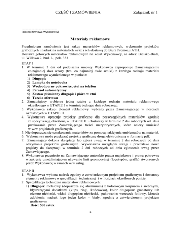 CZĘŚĆ I ZAMÓWIENIA Załącznik nr 1 Materiały reklamowe