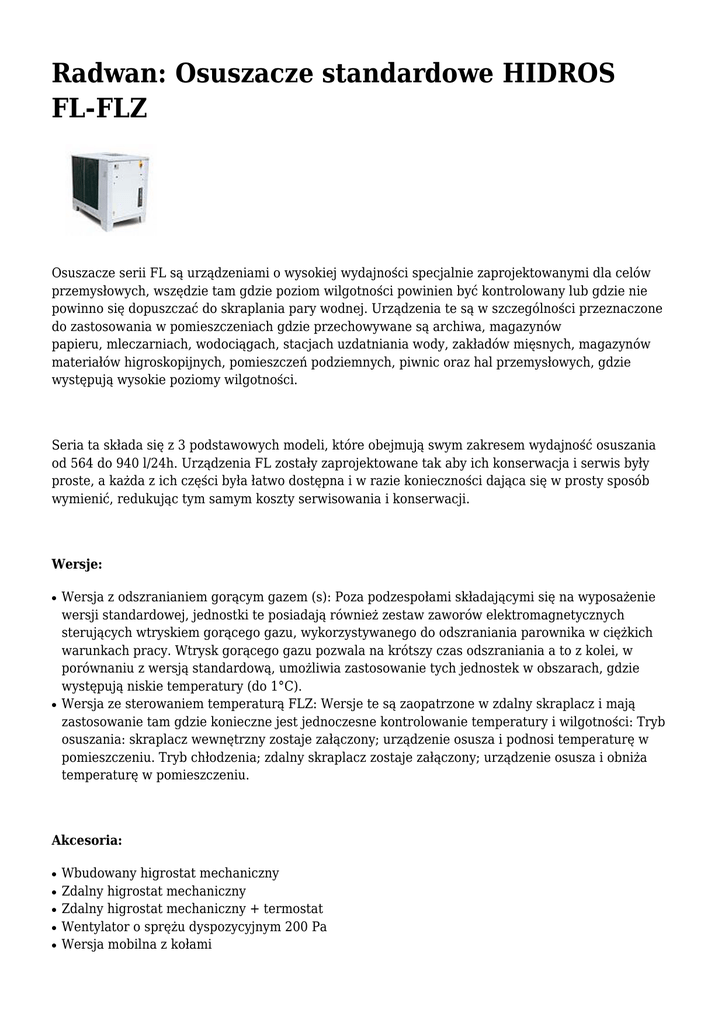 Radwan: Osuszacze standardowe HIDROS FL-FLZ