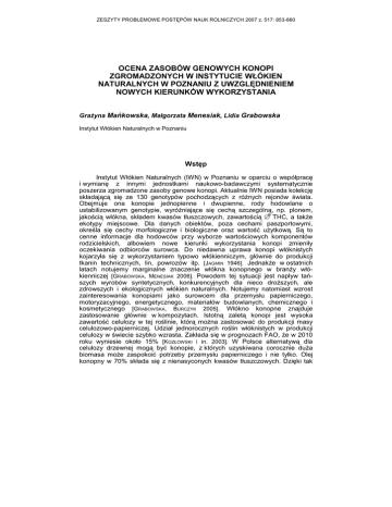 ocena zasobów genowych konopi zgromadzonych w instytucie
