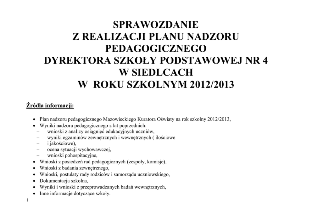 sprawozdanie z realizacji planu nadzoru pedagogicznego dyrektora