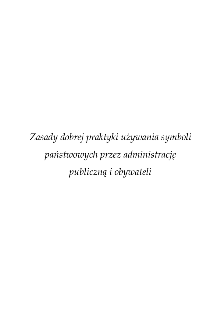 Zasady dobrej praktyki używania symboli państwowych przez administrację publiczną i obywateli Zasady dobrej praktyki są zbiorem wskazówek na temat właściwych sposobów używania i postępowania z godłem i barwami państwowymi, zapewniających tym symbolom należną cześć i szacunek, zgodnie z obowiązującymi przepisami prawa oraz wielowiekowa tradycją. Poniższe zasady, przeznaczone dla administracji publicznej oraz placówek oświatowych, zostały ustalone na podstawie powszechnie uznanych praktyk i doświadczeń innych krajów, wyników dyskusji z udziałem przedstawicieli " różnych szczebli administracji publicznej oraz specjalistów z dziedziny heraldyki i weksylologii oraz opinii kierowników jednostek objętych kontrolą NIK. Chcemy być szanowani - szanujmy swoje symbole Symbole narodowe stanowią o tożsamości państwa, narodu oraz obywateli. Są wyrazem czci, szacunku i wartości narodowych, ich dzieje to także część historii państwa. Są również wyrazem patriotyzmu i oddania sprawie najwyższej, jaką jest Ojczyzna. Zawarte poniżej wskazówki, dotyczące używania i zachowania obywateli naszego państwa wobec symboli narodowych, wywodzą się z wielowiekowej tradycji polskiej oraz dobrych wzorców pielęgnowanych w innych krajach. W powszechnym poczuciu Polacy są patriotami, ale nie manifestują tego ani na co dzień, ani od święta, w takim stopniu, jak miało to miejsce wczasach II Rzeczypospolitej, ani jak to jest obecnie praktykowane w innych krajach. W Polsce po II wojnie światowej przez wiele lat symbole państwowe były zawłaszczane przez państwo. Obywatele nie mieli prawa do ich swobodnego używania. Praktyka ta zmieniła się po wyborach w czerwcu 1989 r. Dopiero jednak w kwietniu 2004 r., w wyniku nowelizacji ustawy o godle, zwrócono narodowi prawo do używania symboli państwowych. Wiedza społeczeństwa na ten temat jest jednak nadal niewystarczająca. Mając nadzieję, że znajomość zasad używania symboli państwowych może przyczynić się do podniesienia kultury ich używania, poniżej przedstawiamy podstawowe zasady i wskazówki dla obywateli. Godło, flaga i hymn są symbolami naszego państwa, do których należy odnosić się z należną czcią i szacunkiem. W Polsce nasze symbole państwowe mają pierwszeństwo przed każdym innym znakiem, np. znakami stowarzyszeń, miast, organizacji krajowych i międzynarodowych. Miejscem pierwszym (uprzywilejowanym) jest zawsze prawa strona osoby stojącej tyłem do budynku lub na prawo od godła, patrząc od strony godła (tj. kierunek, w którym patrzy orzeł). Jest to zasada heraldyczna, przeniesiona do protokołu flagowego, zgodnie z którą prawą stronę tarczy herbowej określa się z pozycji trzymającego ją niegdyś rycerza, Tradycyjnie godło i flaga pełnią rolę szczególnych znaków informacyjnych: umieszczone na lub wewnątrz budynku komunikują, że znajduje się w nim urząd administracji publicznej. Umieszczone w większej liczbie stają się dekoracją akcentującą wydarzenie państwowe lub narodowe. Otaczanie symboli RP czcią i szacunkiem jest prawem i obowiązkiem każdego z nas, dlatego powinniśmy reagować na wszelkie przejawy braku czci i szacunku oraz zgłaszać to odpowiednim organom (np. straży miejskiej, policji). Symbole i my Wywieszajmy flagi, aby uczcić ważne uroczystości, rocznice i święta państwowe. Flagi możemy wywieszać również wówczas, kiedy chcemy uczcić ważne wydarzenia naszego życia prywatnego. Tak robi się w wielu krajach. Flaga z godłem nie powinna być używana przez obywateli, ponieważ jest zastrzeżona wyłącznie dla grupy podmiotów określonych w ustawie (placówki dyplomatyczne, lotniska, samoloty cywilne podczas lotów za granicą, kapitanaty portów, na statkach morskich). Flaga, którą wywieszamy powinna być czysta, wyprasowana. Wywieszona flaga powinna być przymocowana w taki sposób, aby nie uległa zerwaniu, np. przywiązana lub przymocowana pinezką do drzewca. Flaga powinna być tak umieszczana, aby nie dotykała podłoża, podłogi lub nie była zamoczona w wodzie. Jeżeli flaga zaplącze się dookoła drzewca, trzeba ją rozplątać. Zaplątana flaga nie jest ozdobą. Jeżeli flaga jest wstanie nie nadającym się już do użytku, powinna być zniszczona w sposób godny, najlepiej przez spalenie lub pocięcie w taki sposób, aby rozdzielić barwy. Flaga z papieru używana podczas różnego rodzaju uroczystości, nie powinna być porzucona, wyrzuca na śmietnik, ale zniszczona w sposób godny. Podczas ceremonii podnoszenia albo opuszczania flagi, lub gdy flaga jest niesiona podczas pochodu, przemarszu, przeglądu, wszystkie osoby, z wyjątkiem tych, które są w mundurach, powinny być zwrócone twarzą do flagi i przyjąć postawę wyprostowaną. Nie wywiesza się godła ani flagi, jeżeli są one brudne, podarte, spłowiałe lub pomazane. Flagi opuszczamy do połowy masztu tylko w szczególnych, określonych sytuacjach (żałoba). Drzewce lub maszt flagi przeznaczone są tylko do tego celu, nie umieszcza się na nich żadnych dekoracji ani znaków reklamowych. Na godle ani fladze nie należy umieszczać jakichkolwiek napisów, rysunków, znaków, liter, obrazków. Pamiętajmy, że flaga lub barwy wywieszane „do góry nogami" nie symbolizują już państwa polskiego. Trzeba zwracać uwagę na właściwą kolejność barw, jeżeli umieszczane są pionowo, kolor biały powinien znajdować się po lewej stronie płaszczyzny oglądanej z przodu. Osoby z umieszczonym na ubraniu wizerunkiem godła lub flagi powinny o tym pamiętać i zachowywać się godnie. Artystyczne przetworzenia wizerunków flagi lub godła nie mogą ich ośmieszać. Symboli państwowych nie umieszcza się na chusteczkach, serwetkach lub innych przedmiotach przeznaczonych do okresowego użycia i następnie wyrzucanych. Niedopuszczalne jest niszczenie lub uszkadzanie godła albo flagi ani niegodne zachowanie przy symbolach, Podczas wykonywan