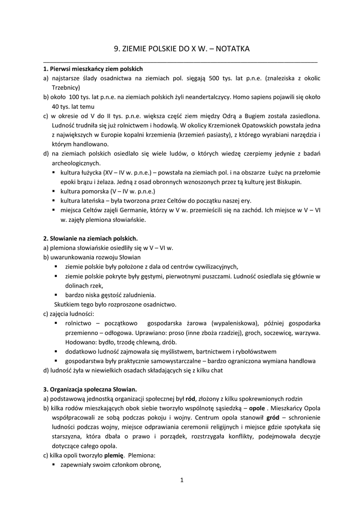 9. ZIEMIE POLSKIE DO X W. – NOTATKA