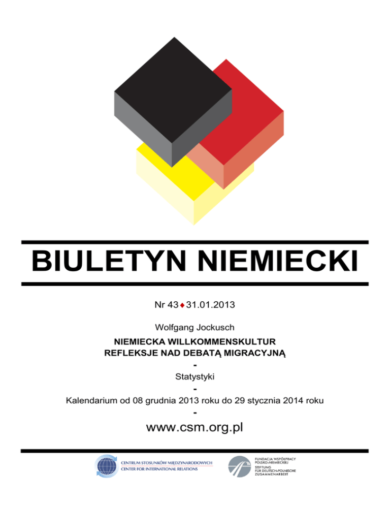 BIULETYN NIEMIECKI Nr 4331.01.2013 Wolfgang Jockusch NIEMIECKA WILLKOMMENSKULTUR REFLEKSJE NAD DEBATĄ MIGRACYJNĄ Statystyki Kalendarium od 08 grudnia 2013 roku do 29 stycznia 2014 roku - www.csm.org.pl Nr 4331.01.2014r 2 Niemiecka Willkommenskultur Refleksje nad debatą migracyjną Wolfgang Jockusch Z końcem obowiązywania ostatnich ograniczeń swobody przemieszczania się na terenie UE dla obywateli Bułgarii i Rumunii u progu roku 2014 na nowo rozgorzała wśród niemieckiej opinii publicznej debata dotycząca podejścia do kwestii imigracji w Niemczech. W krótkim dokumencie bawarska CSU pod przewodnictwem premiera rządu Bawarii Horsta Seehofera zdystansowała się wobec tych imigrantów, którzy przybyli do Niemiec przede wszystkim po to, aby korzystać z niemieckich świadczeń socjalnych. Konserwatywna partia, z której wywodził się sprawujący do końca roku 2013 urząd ministra rządu federalnego, którego zakres kompetencji obejmował również sprawy integracji i imigracji, używając określania „imigracja biedy”/„napływ biedy”, wskazała na zagrożenia spowodowane nadmiernym obciążeniem systemu świadczeń socjalnych, które już teraz jest bolączką wielu gmin. Sformułowanie „kto oszukuje, ten wylatuje” w medialnym odbiorze stanowiące najważniejszy element dokumentu, stało się przedmiotem trwającej wiele tygodniu gorącej debaty. Wiązało się to również z zarzutami ksenofobii oraz antyeuropejskiego nastawiania kierowanymi wobec bawarskiej CSU zarówno ze strony mediów, jak i przeciwników politycznych. Wszakże swoboda przemieszczania się osób stanowi jeden z najważniejszych fundamentów idei europejskiej, natomiast stwierdzenie CSU podaje ów fundament w wątpliwość. Z ekonomicznego punktu widzenia krytyka opiera się głównie na podkreśleniu, że wspomniane twierdzenie niweczy niemieckie starania o napływ potrzebnych niemieckiej gospodarce imigrantów. Nie jest to z pewnością oznaka wykształconej „kultury przyjęcia” – Niemcy będą postrzegane krytycznie przez poszukujących zatrudnienia obcokrajowców. www.csm.org.pl Wybrany w listopadzie przewodniczący Federalnego Zrzeszenia Niemieckich Organizacji Pracodawców (niem. BDA) Ingo Kramer stwierdził w wywiadzie dla dziennika Handelsblatt, że Niemcy pilnie potrzebują zmiany kultury politycznej, gospodarczej i społecznej, aby poszukiwani fachowcy i wykwalifikowani pracownicy zdecydowali się na pracę i życie w Niemczech, a imigranci czuli się naprawdę mile widziani. Mimo pierwszych sukcesów nadal widoczna jest potrzeba działania w tym kierunku (Handelsblatt 2014). Stworzenie Willkommenskultur, które jest bardzo atrakcyjne dla imigrantów, jest również jednym z najważniejszych wyzwań politycznych, które równocześnie zapewnia napływ wykwalifikowanych pracowników. Nie tylko w Niemczech usilnie zabiega się o wypracowanie postaw kultury przyjęcia. Również zagraniczni politycy od czasu do czasu zarzucają Niemcom zaniedbania w tej dziedzinie. Były polski prezydent Lech Kaczyński twierdził, że Niemcy konsekwentnie odmawiają zagwarantowania praw mniejszościom, które nie zamieszkują na terenie Niemiec od stuleci. Zarzucał on władzom niemieckim uprawianie polityki asymilacji względem mniejszości (Focus Online 2008). W podobnym tonie wypowiadał się również przy różnych okazjach turecki premier Erdoğan. W ostatnich latach pojęcie kultury przyjęcia silnie ugruntowało się w niemieckiej debacie migracyjnej. Jeżeli wcześniej chodziło jedynie o kwestie praw, jakie powinno się przyznawać obcokrajowcom (i przede wszystkim, czego powinno się im zabronić), teraz zastanawiamy się głównie nad tym, co możemy uczynić, aby Niemcy stały się dla nich krajem jeszcze atrakcyjniejszym. W międzyczasie wyrażenie „kultura przyjęcia” przeobraziło się z modnego pojęcia w integralny element programów polityki integracyjnej (Schammann, Kretzschmar, Gölz, 2012). Niemcy w istocie chcą dokonać spóźnionej w oczach wielu przemiany z kraju, do którego imigruje się Nr 4331.01.2014r wbrew woli, a tylko z konieczności, w miejsce, gdzie panuje kultura przychylnego przyjmowania obcokrajowców. Jak dojdzie do takiej zmiany nastawienia? Czyż nie zawdzięczamy tego w znacznej mierze sytuacji demograficznej, która jest coraz bardziej niepokojąca? Sytuacja demograficzna Niemiecka gospodarka już teraz cierpi na spory brak wykwalifikowanych pracowników. Winne temu są przewidywane od lat tendencje demograficzne, których skutki dopiero od około 2010 r. powoli stają się odczuwalne. Obecnie niemiecka polityka może pochwalić się rekordową liczbą zatrudnienia. We wrześniu 2013 Federalny Urząd Pracy podał, że liczba ludności aktywnej zawodowo przekracza jak nigdy dotąd 42,1 mln. Zwłaszcza kasy ubezpieczeń społecznych mają szczególne powody do radości z powodu oczekiwanych wpływów z dochodów, co teoretycznie pozwoliłoby na obniżenie składki emerytalnej. Ze względu na fakt, że dane dotyczące rynku pracy rozpatruje się obecnie zawsze w odniesieniu do europejskiego kryzysu, stopa bezrobocia wynosząca zaledwie 5,2% w porównaniu z 26,7% w Hiszpanii i 10,8% we Francji osiąga wymarzony poziom. Jednakże spadek osób zdolnych do pracy rzuca cień na te pomyślne liczby. Do roku 2040 rynek pracy w Niemczech będzie dysponował ludnością pomniejszoną o ok. 10 mln. Jeżeli Niemcy chcą utrzymać swoją pozycję gospodarczą, konieczne jest kreatywne podejście do tematu i odblokowanie nieodkrytego potencjału na rynku pracy. Na płaszczyźnie wewnątrzkrajowej składa się na to podniesienie udziału kobiet w rynku, co wiąże się zarówno ze wspieraniem zwiększania liczby kobiet zajmujących kierownicze stanowiska oraz wykonujących zawód z obrębu szeroko rozumianych nauk ścisłych, takich jak matematyka, nauki przyrodnicze, technologia, inżynieria, jak i wydłużeniem czasu pracy. Na płaszczyźnie międzynarodowej niemi