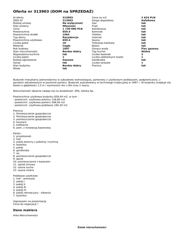 Oferta nr 313903 (DOM na SPRZEDAŻ)